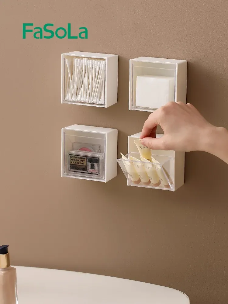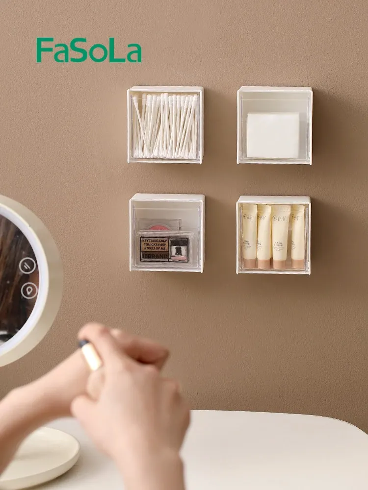 FaSoLa玄関収納コスメ用化粧棉収納ボックス|メイク落とし用コットン整理ゴミ袋|穴あけ不要でトイレもスッキリ!整理整頓を簡単に実現!