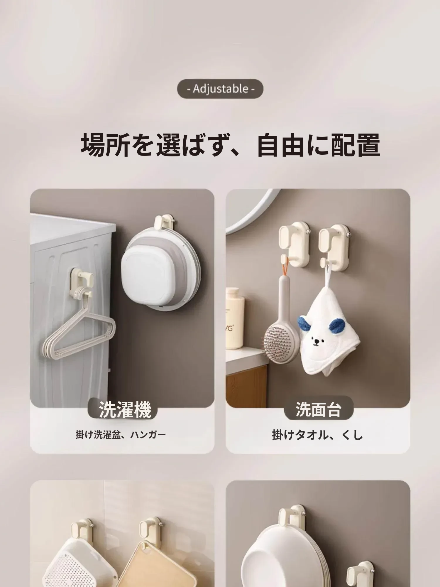 FaSoLa 吸盤付き洗面ボウルフック - バスルームの収納に最適!穴を開けずに簡単取り付け、シャワーエリアをスッキリ整理!おしゃれで機能的な壁掛けラックで、洗面所をもっと便利に!