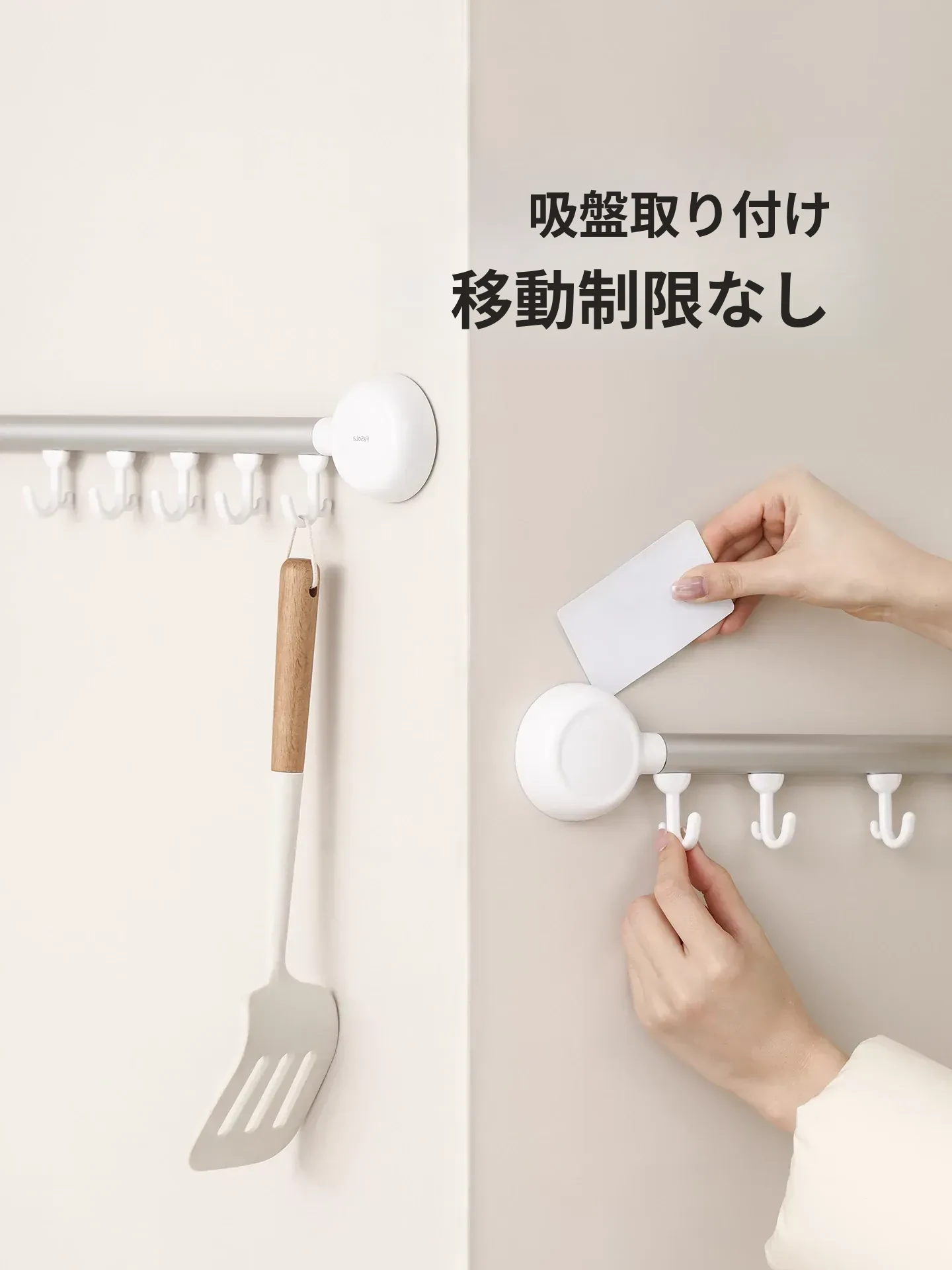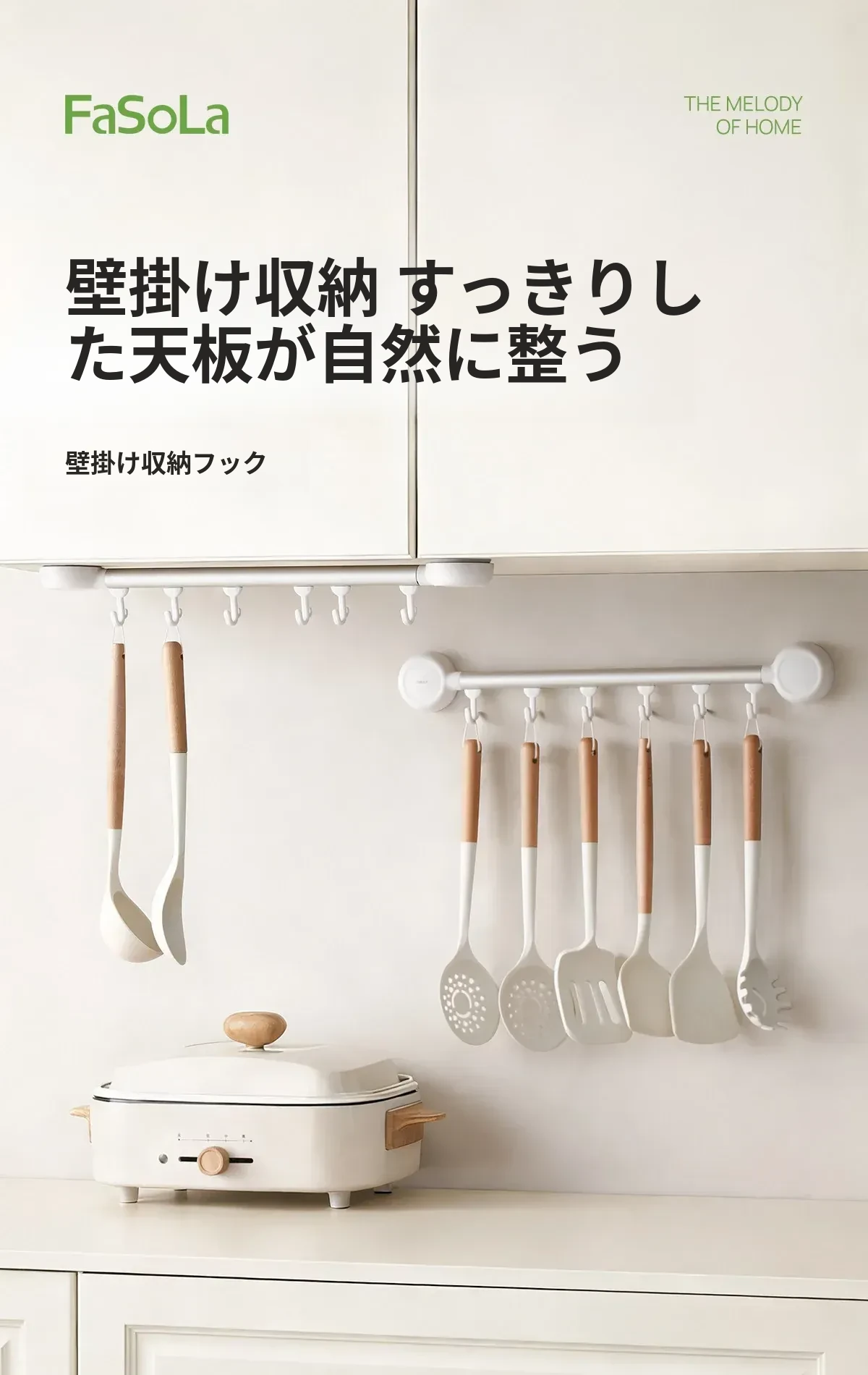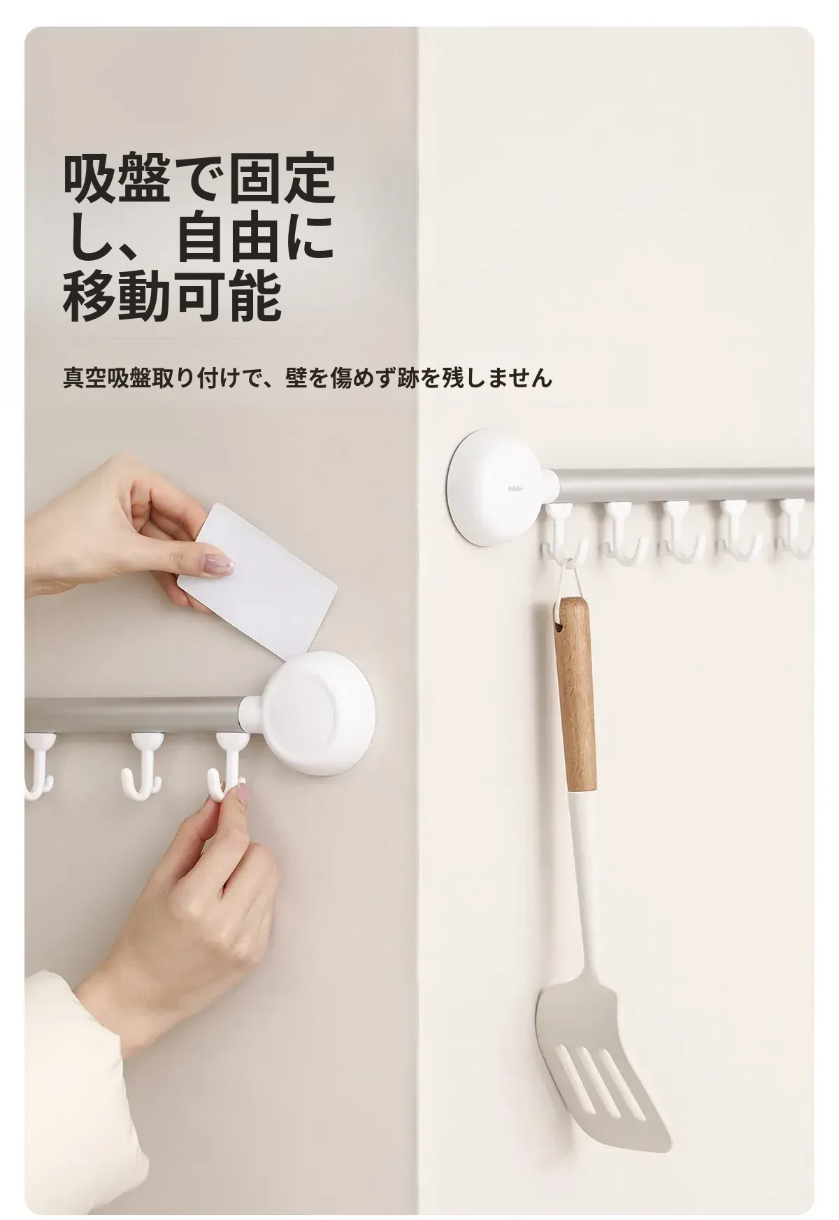 FaSoLaフック 取り付け不要のキッチン用吸盤フックラック - 無痕で強力な耐荷重、バスルームにも最適!整理整頓をサポートする便利アイテム!