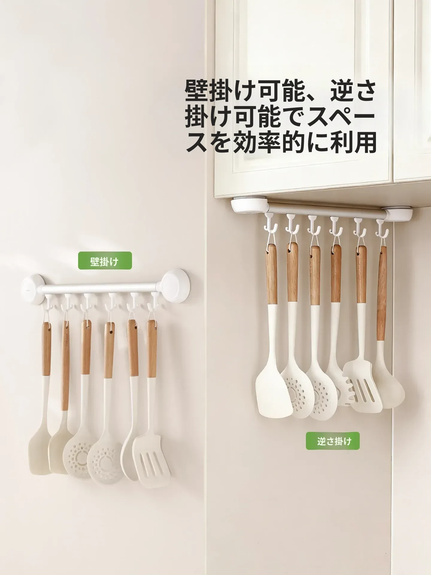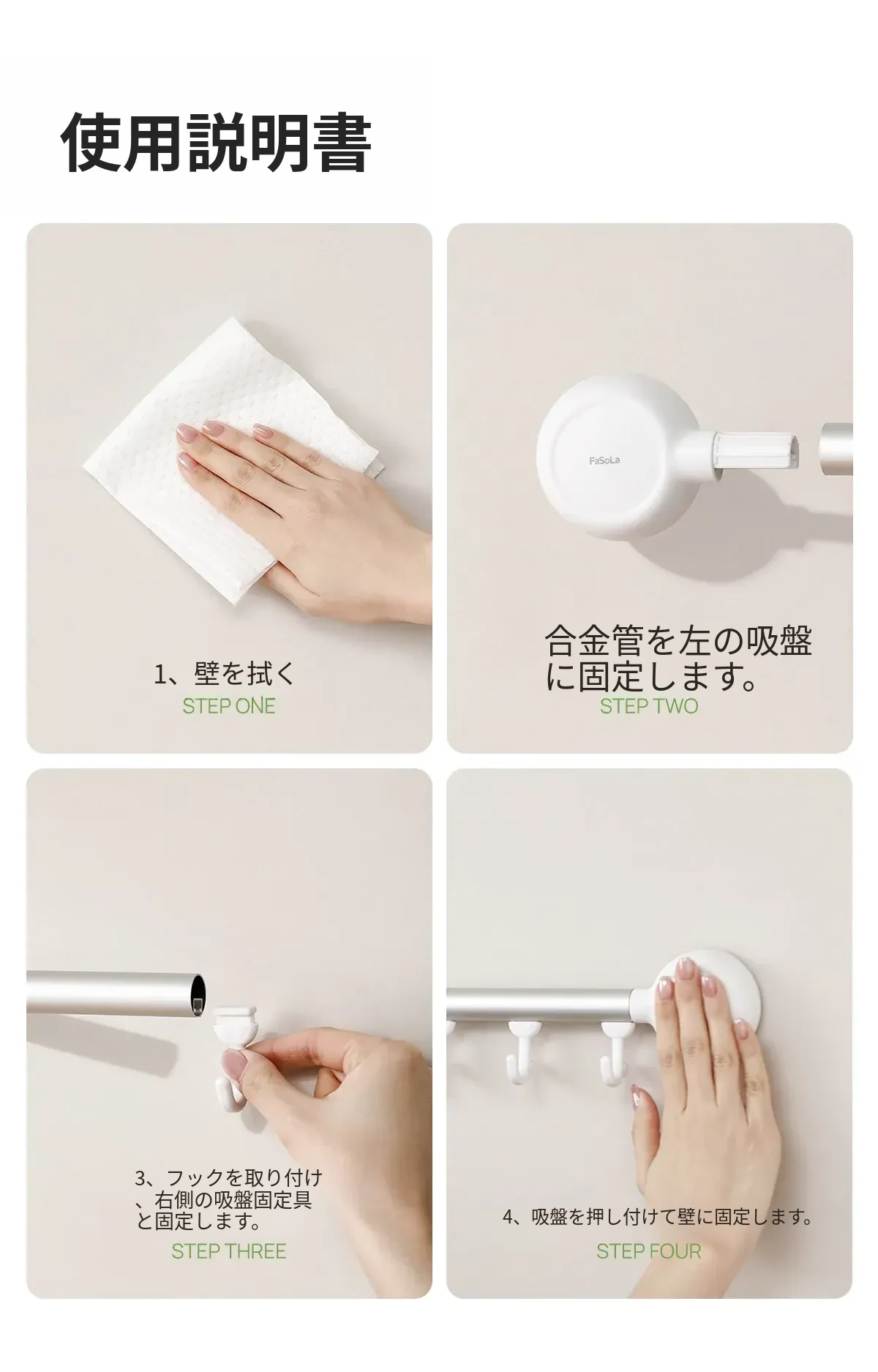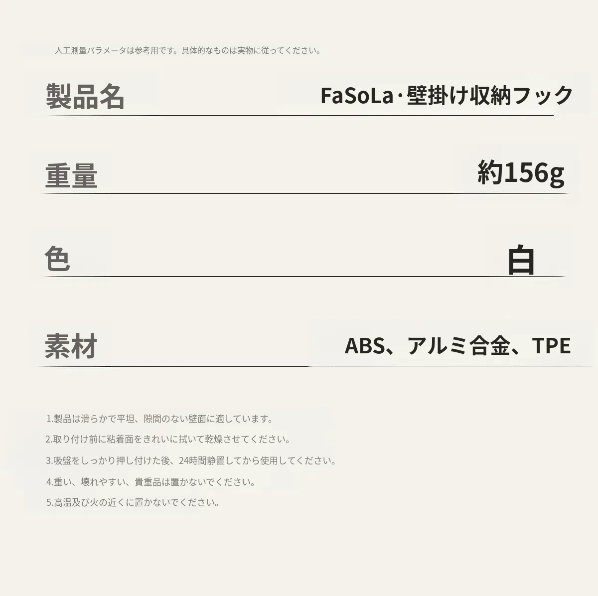 FaSoLaフック 取り付け不要のキッチン用吸盤フックラック - 無痕で強力な耐荷重、バスルームにも最適!整理整頓をサポートする便利アイテム!