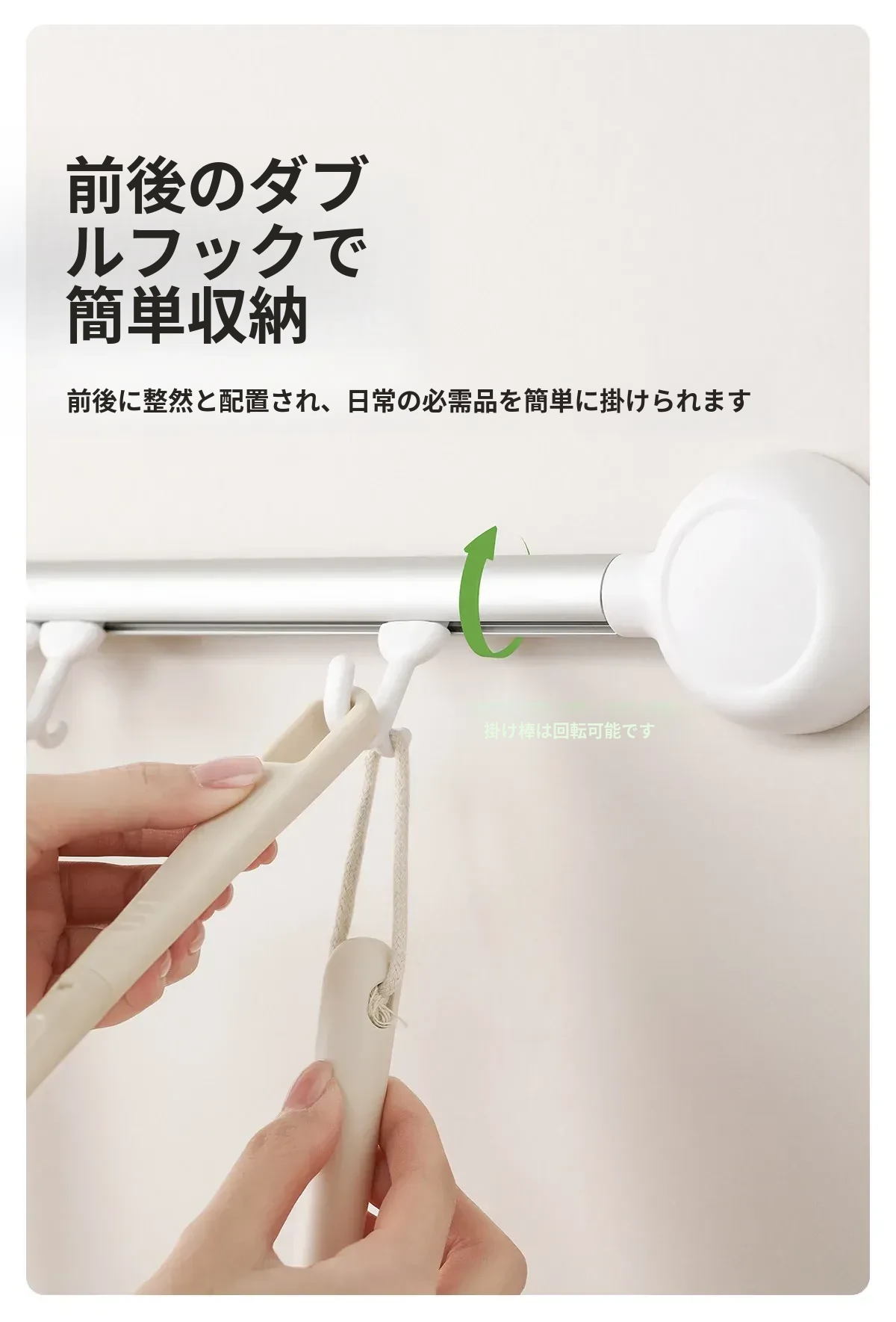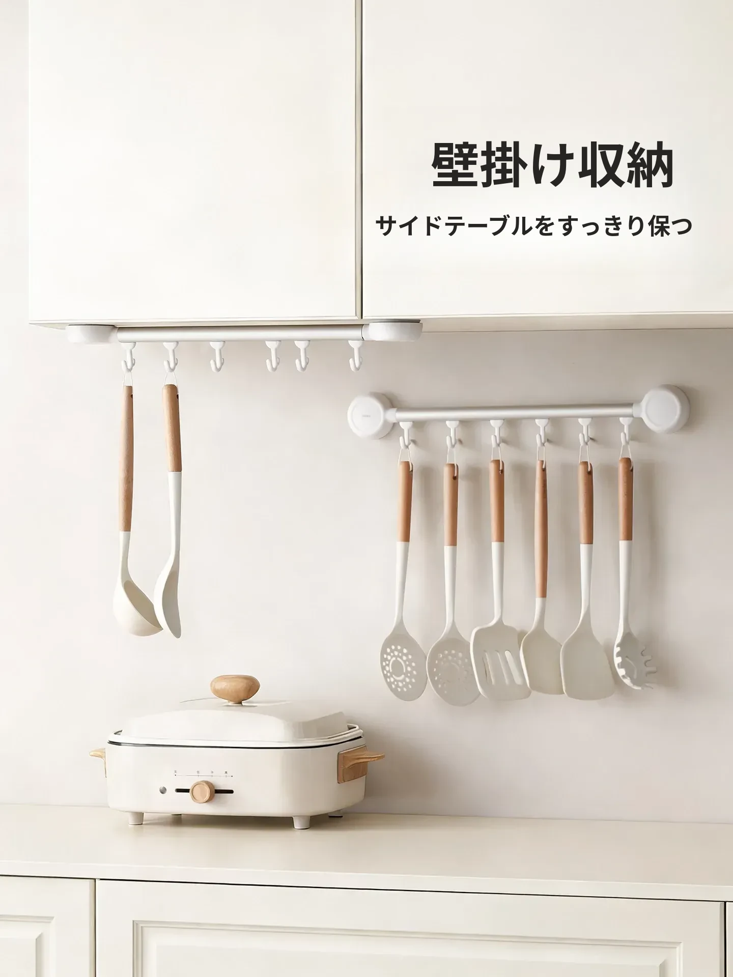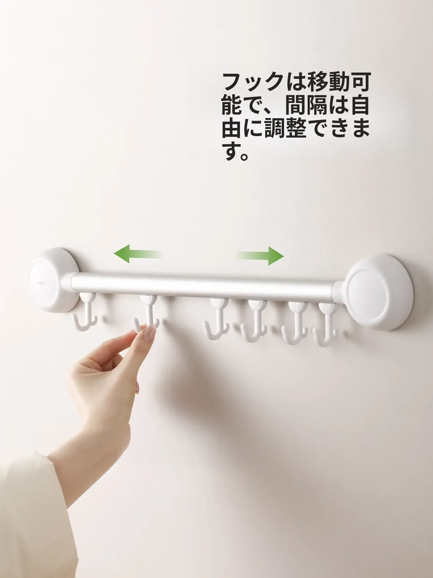 ホワイト・ウォールマウント収納フック【6フック】可動フック/間隔調整自由