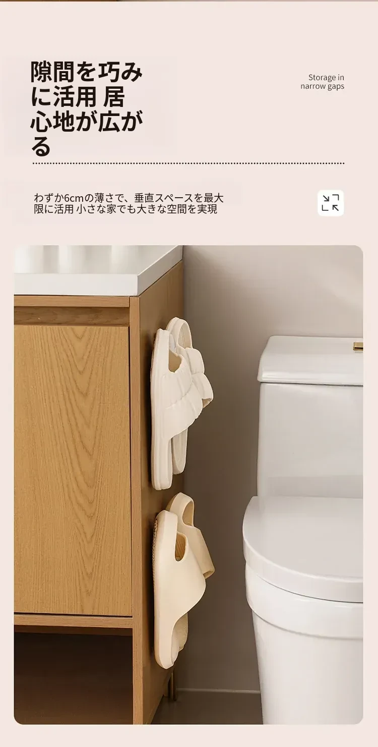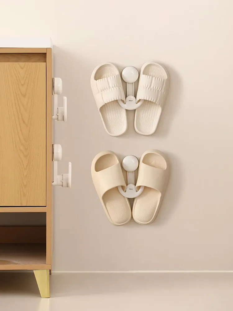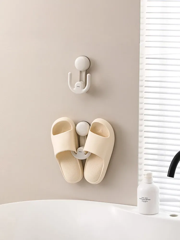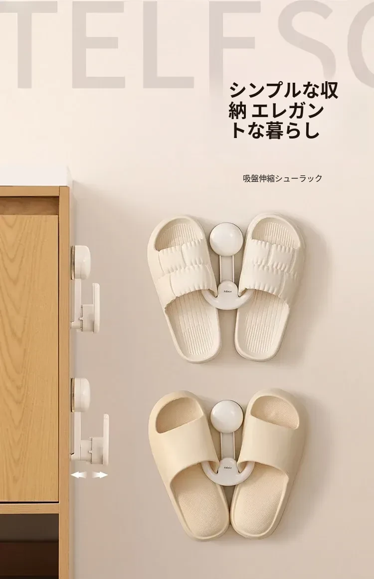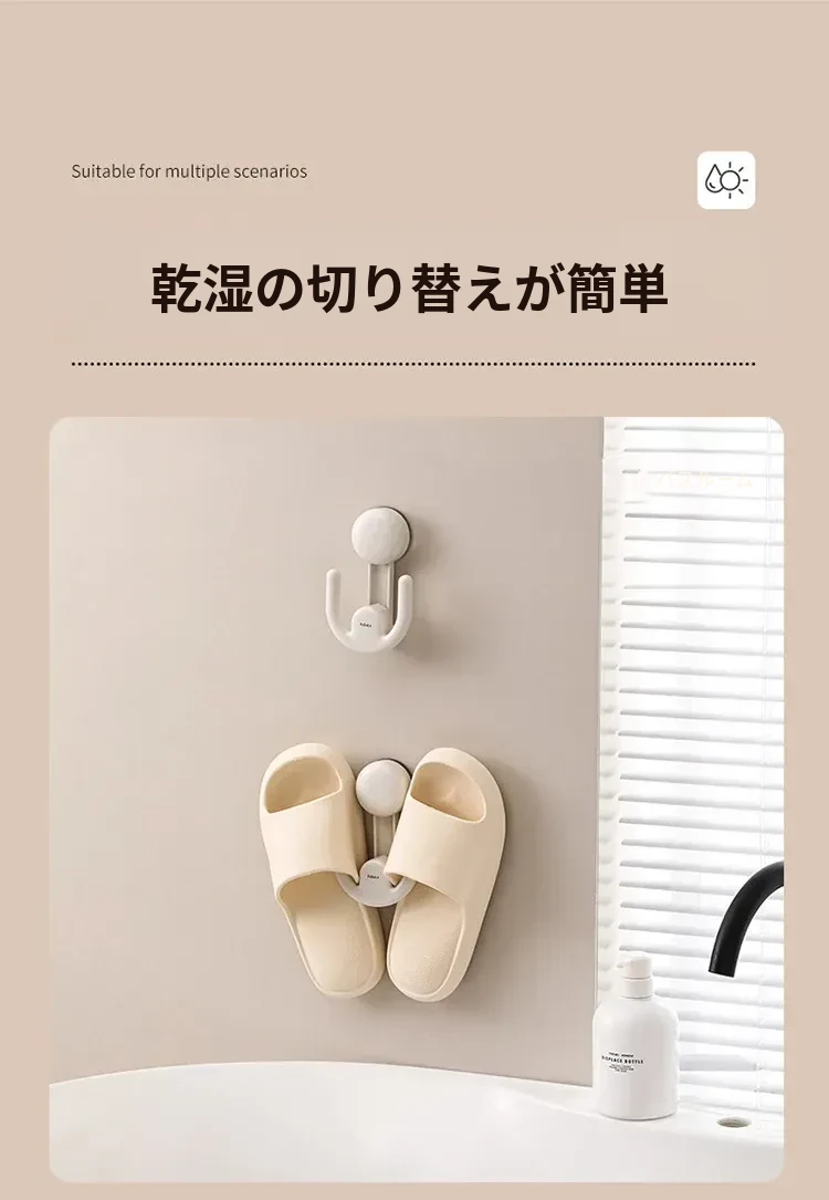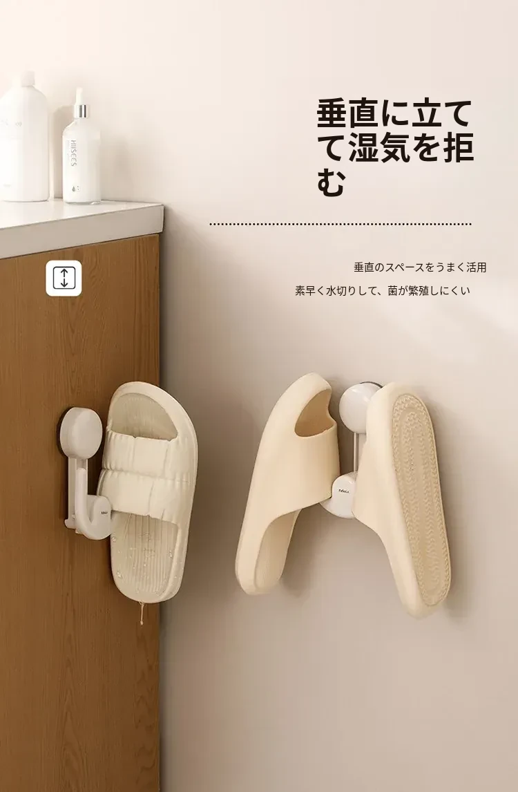 FaSoLa吸盤式スリッパホルダー - 玄関やバスルームに最適な穴あけ不要の壁掛け収納ラック!水切り機能付きで、清潔でスッキリとした空間を実現します。家庭の必需品!