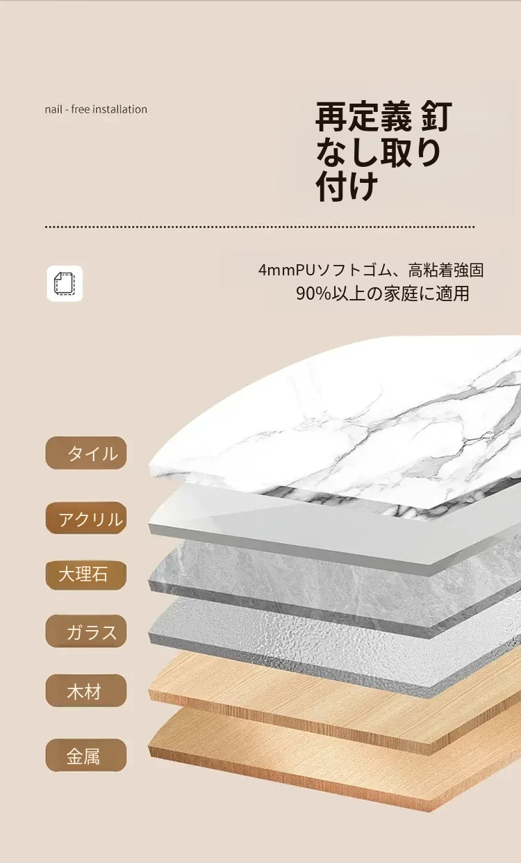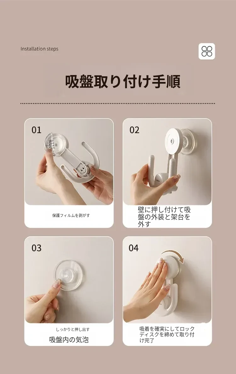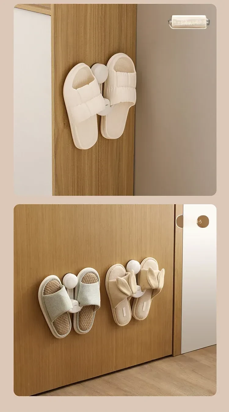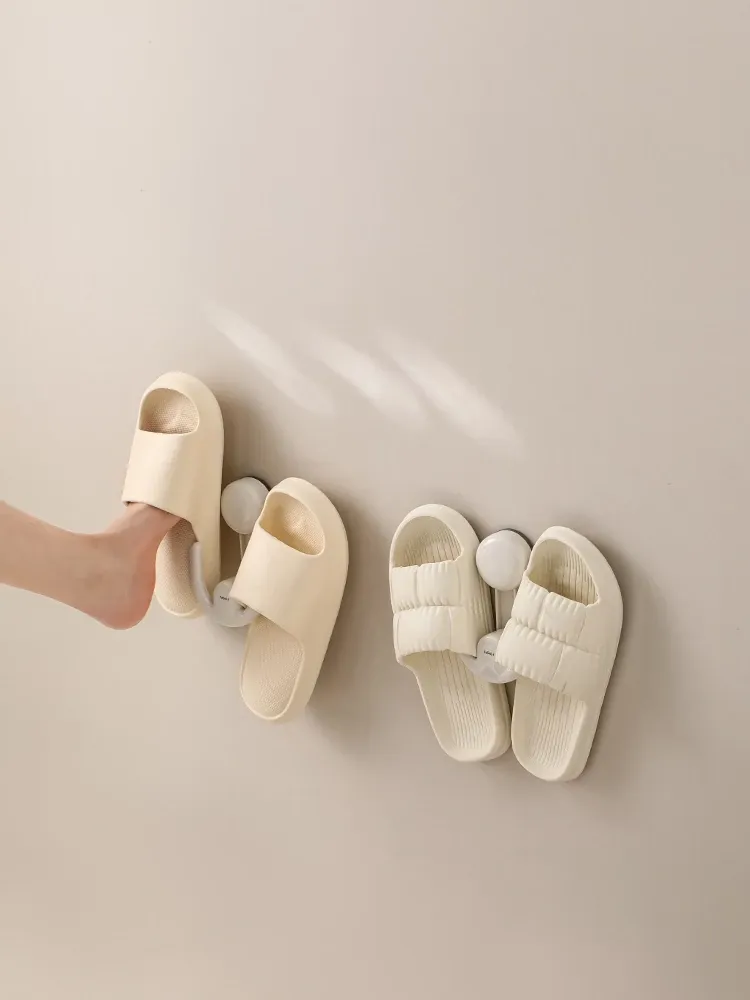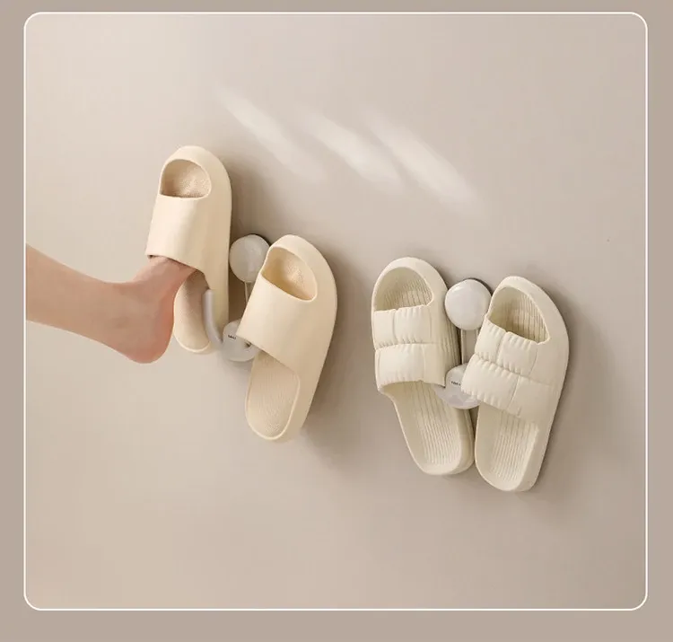 FaSoLa吸盤式スリッパホルダー - 玄関やバスルームに最適な穴あけ不要の壁掛け収納ラック!水切り機能付きで、清潔でスッキリとした空間を実現します。家庭の必需品!
