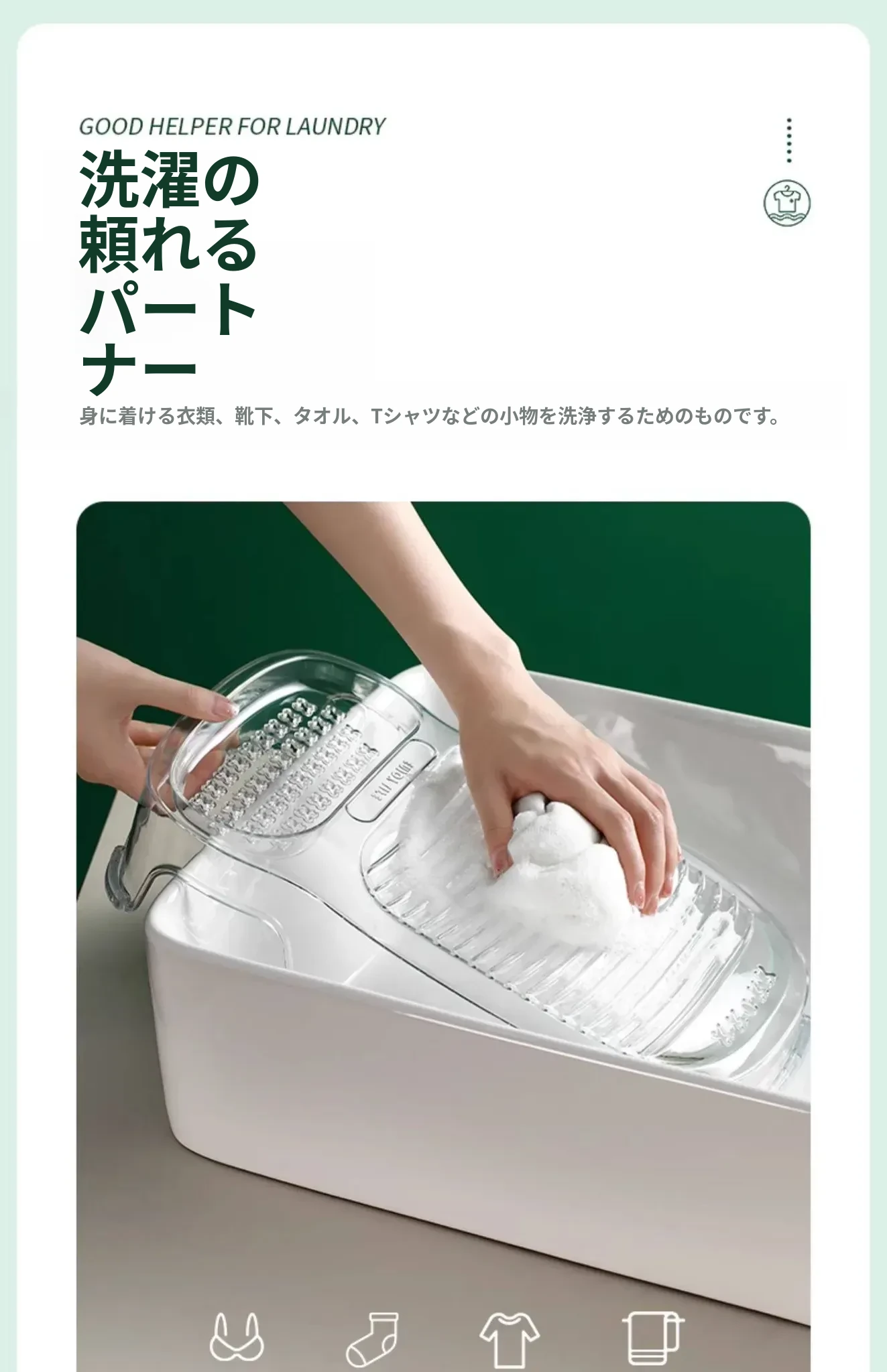 FaSoLa洗濯板 - 新型厚手設計!学生寮や家庭に最適な固定可能な小型洗濯板で、靴下や衣類を簡単に洗えます。手軽に使えて、効率的な洗濯を実現!