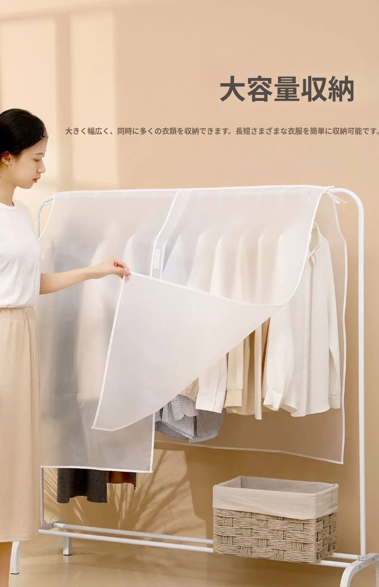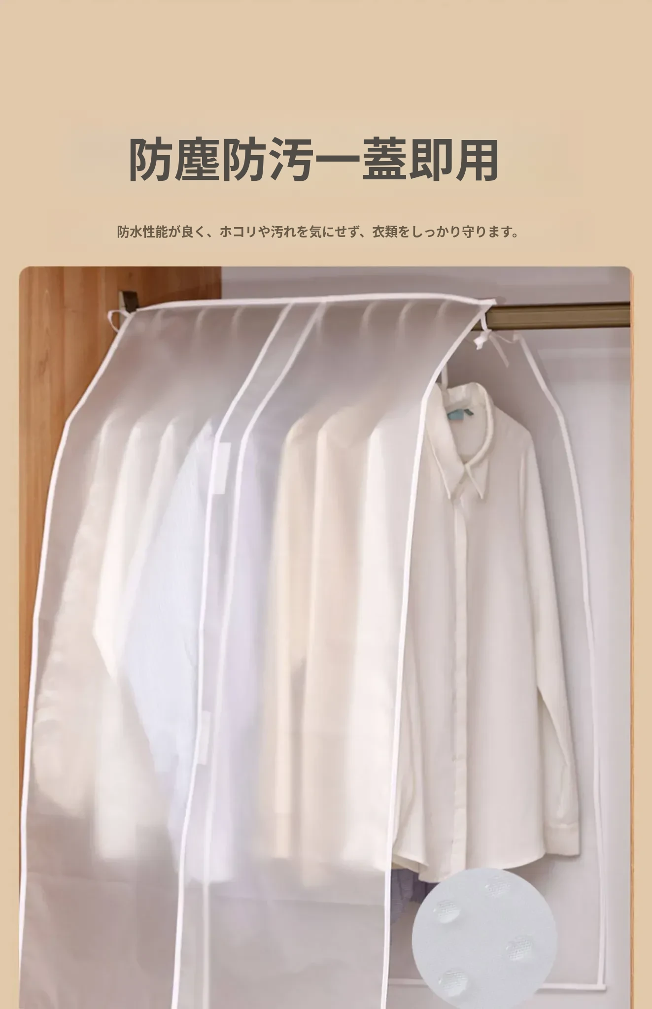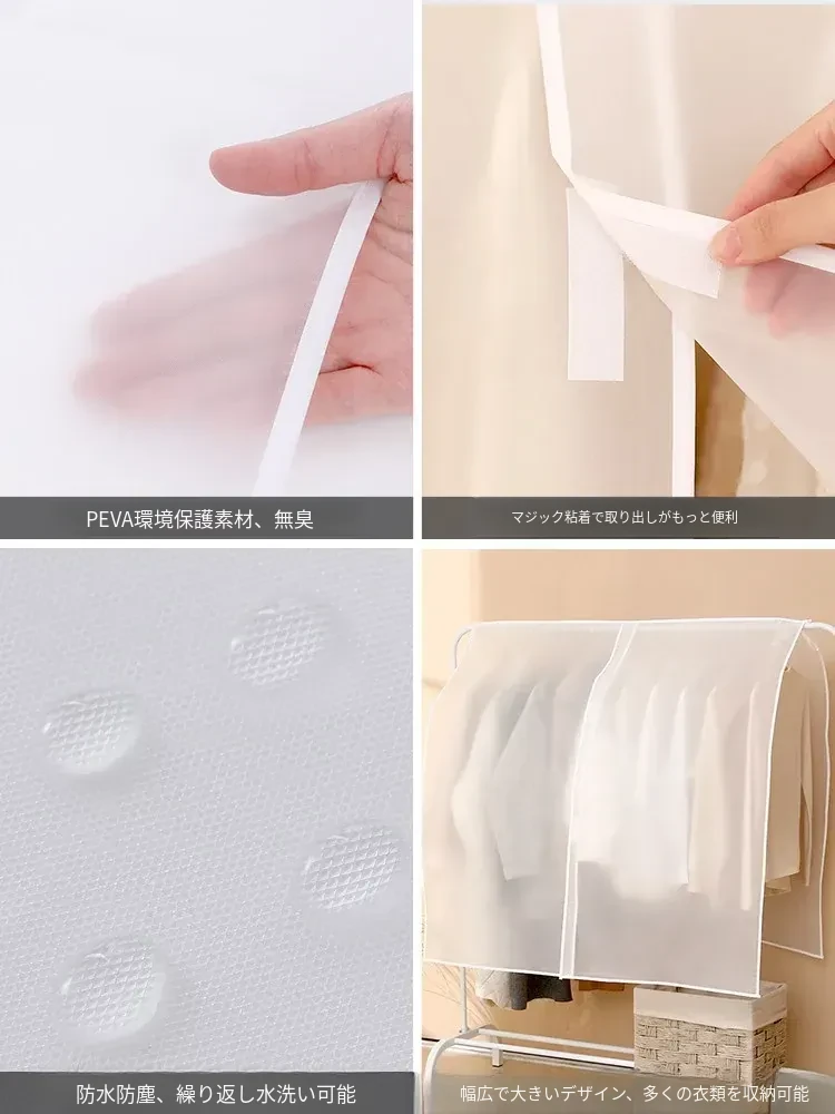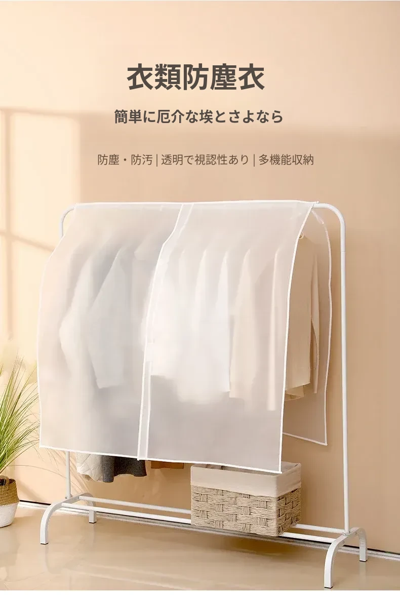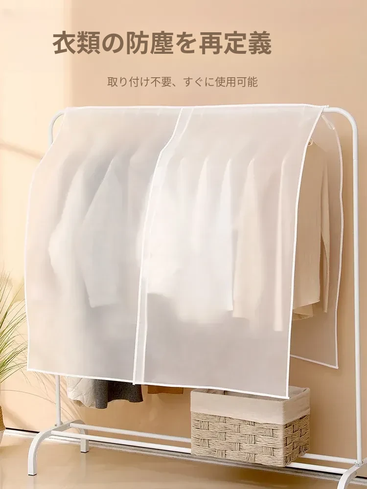 ファソラ衣類ハンガーカバー - ほこりを防ぎ、衣類を美しく保つ透明収納袋。クローゼットの必需品、シンプルでスタイリッシュなデザインで家の中をスッキリ整理!