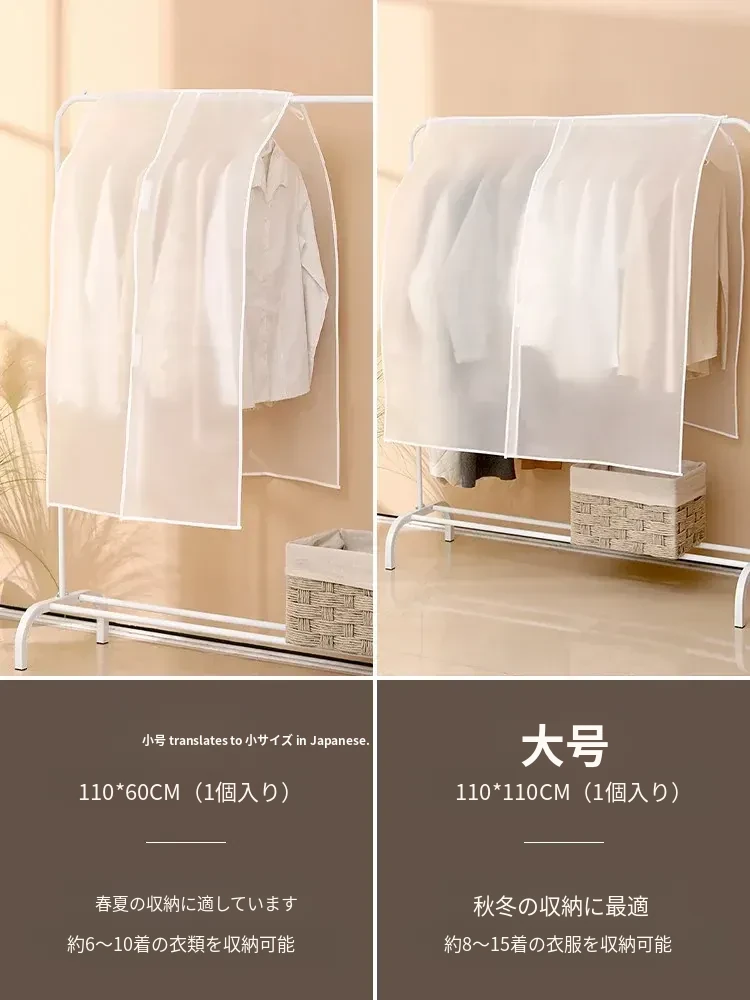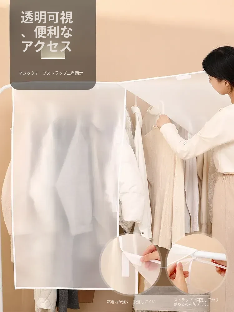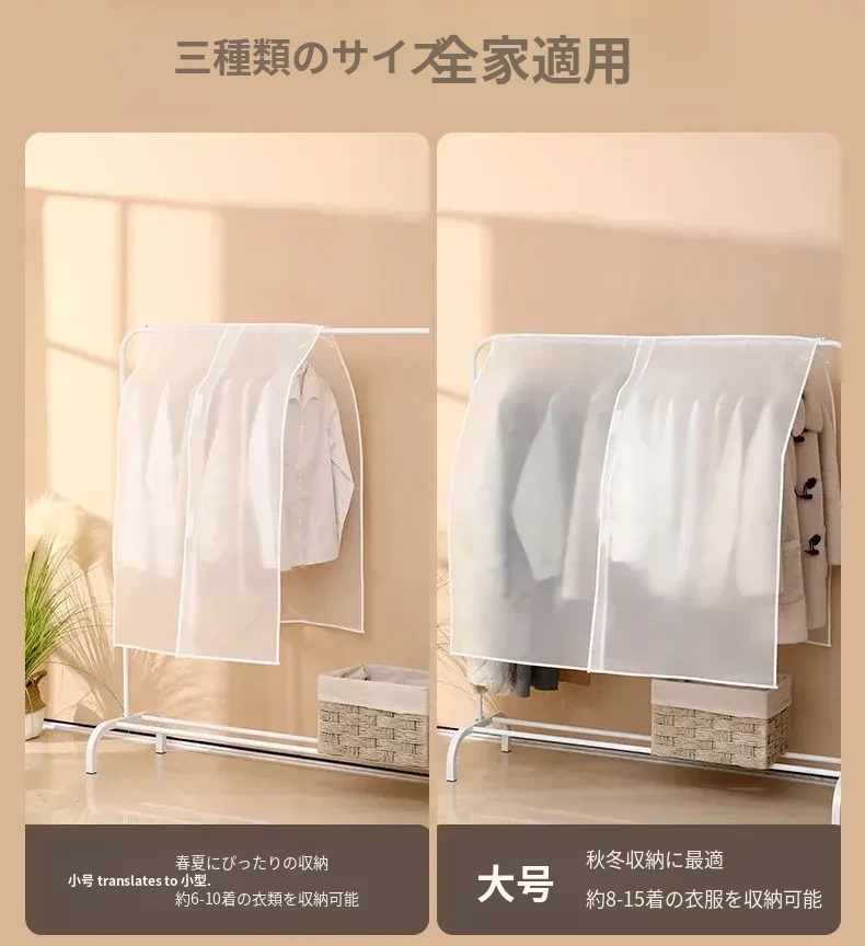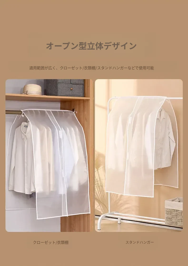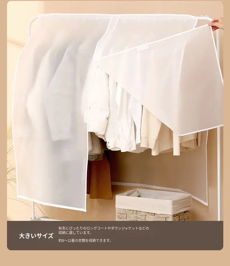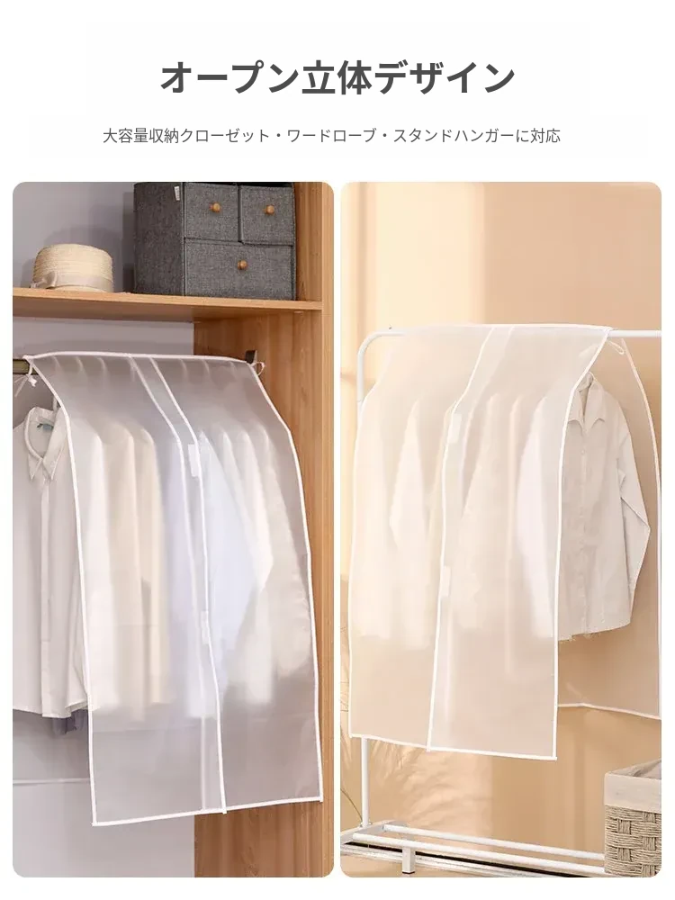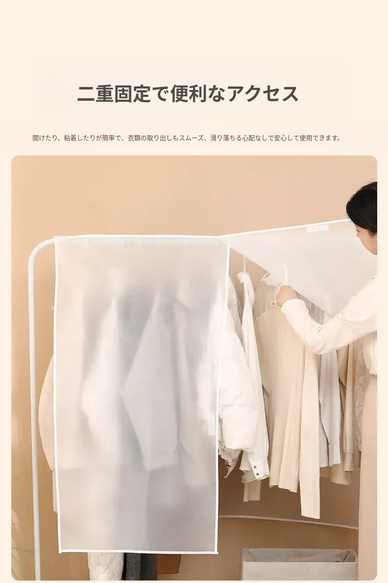 ファソラ衣類ハンガーカバー - ほこりを防ぎ、衣類を美しく保つ透明収納袋。クローゼットの必需品、シンプルでスタイリッシュなデザインで家の中をスッキリ整理!