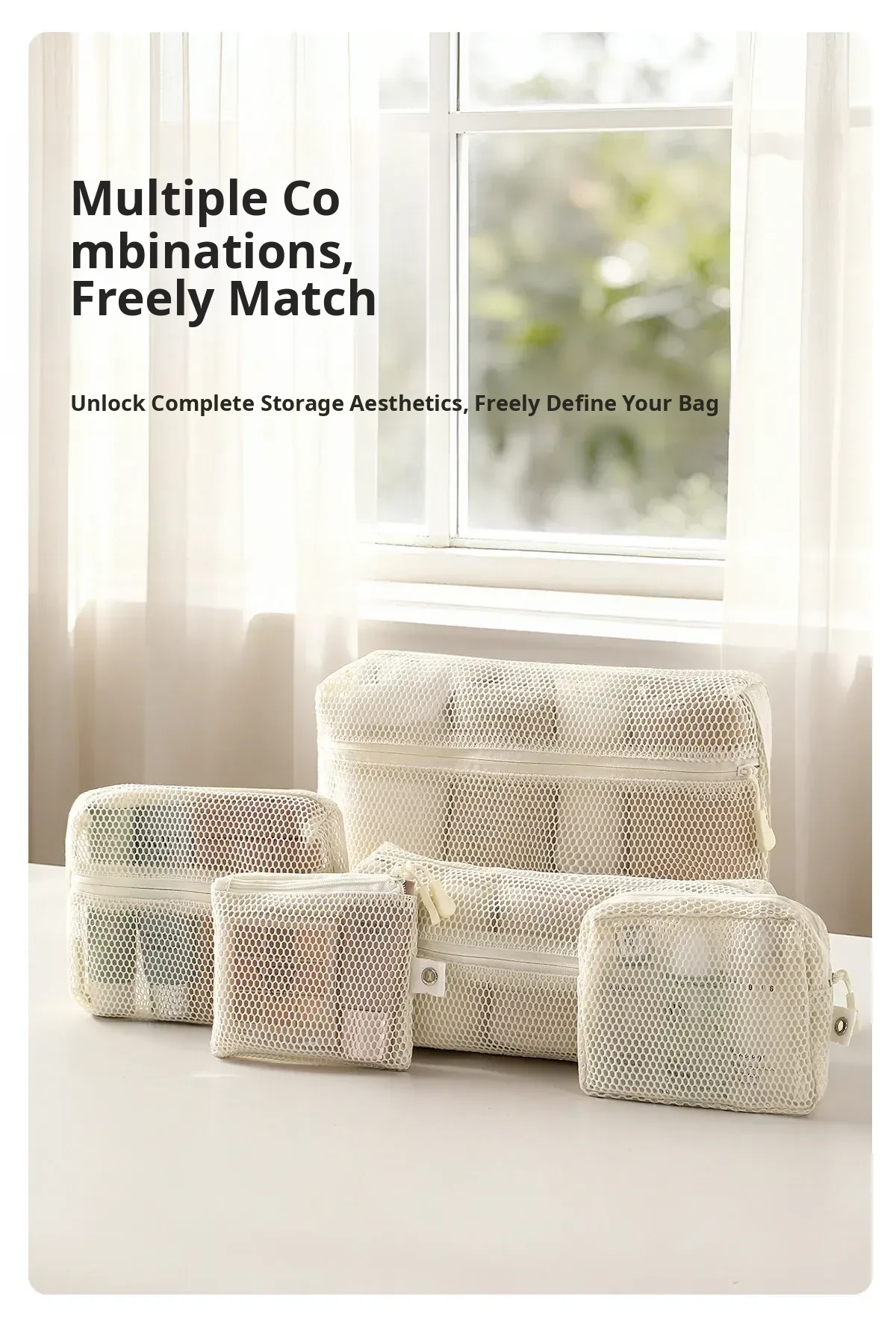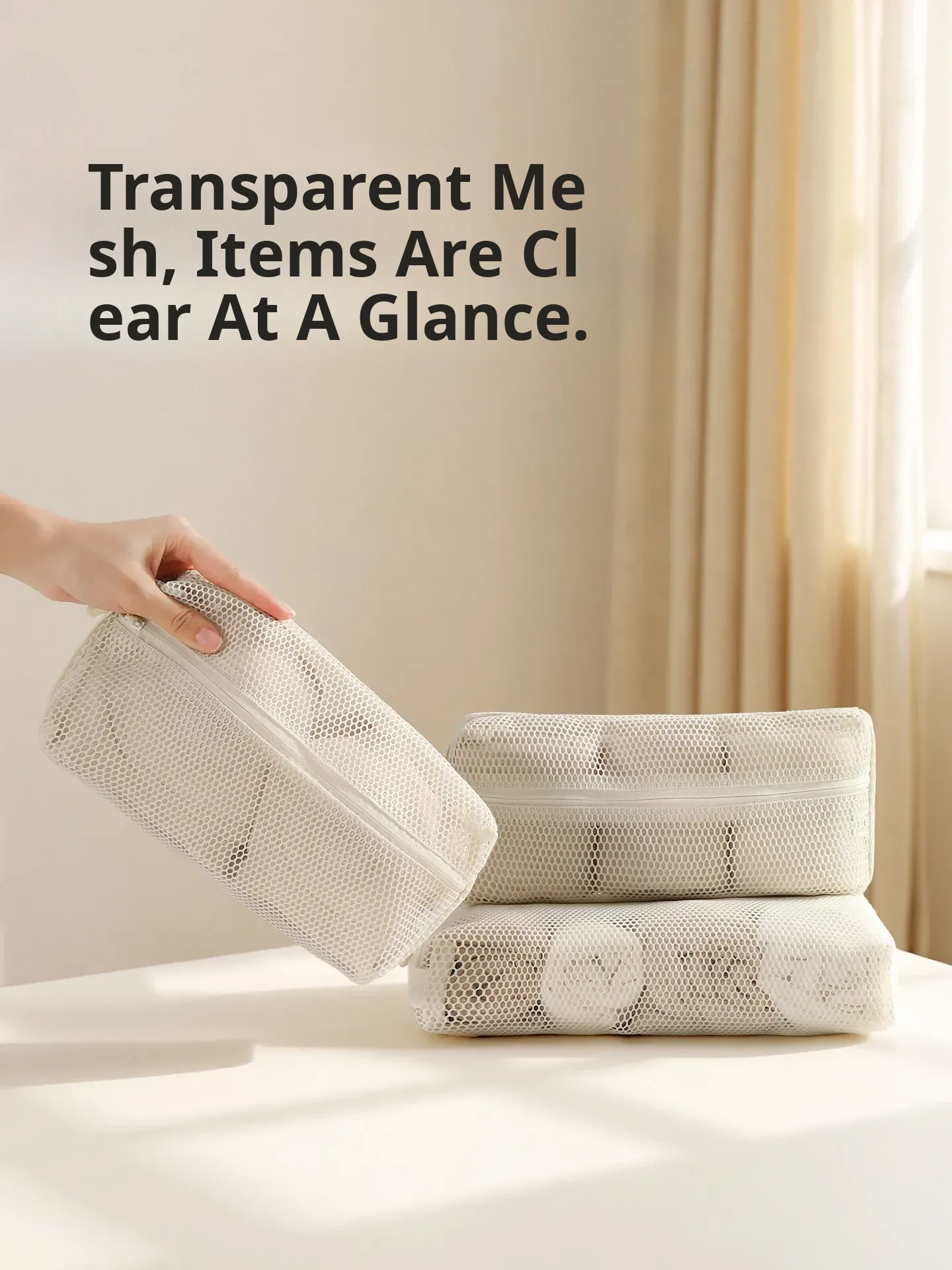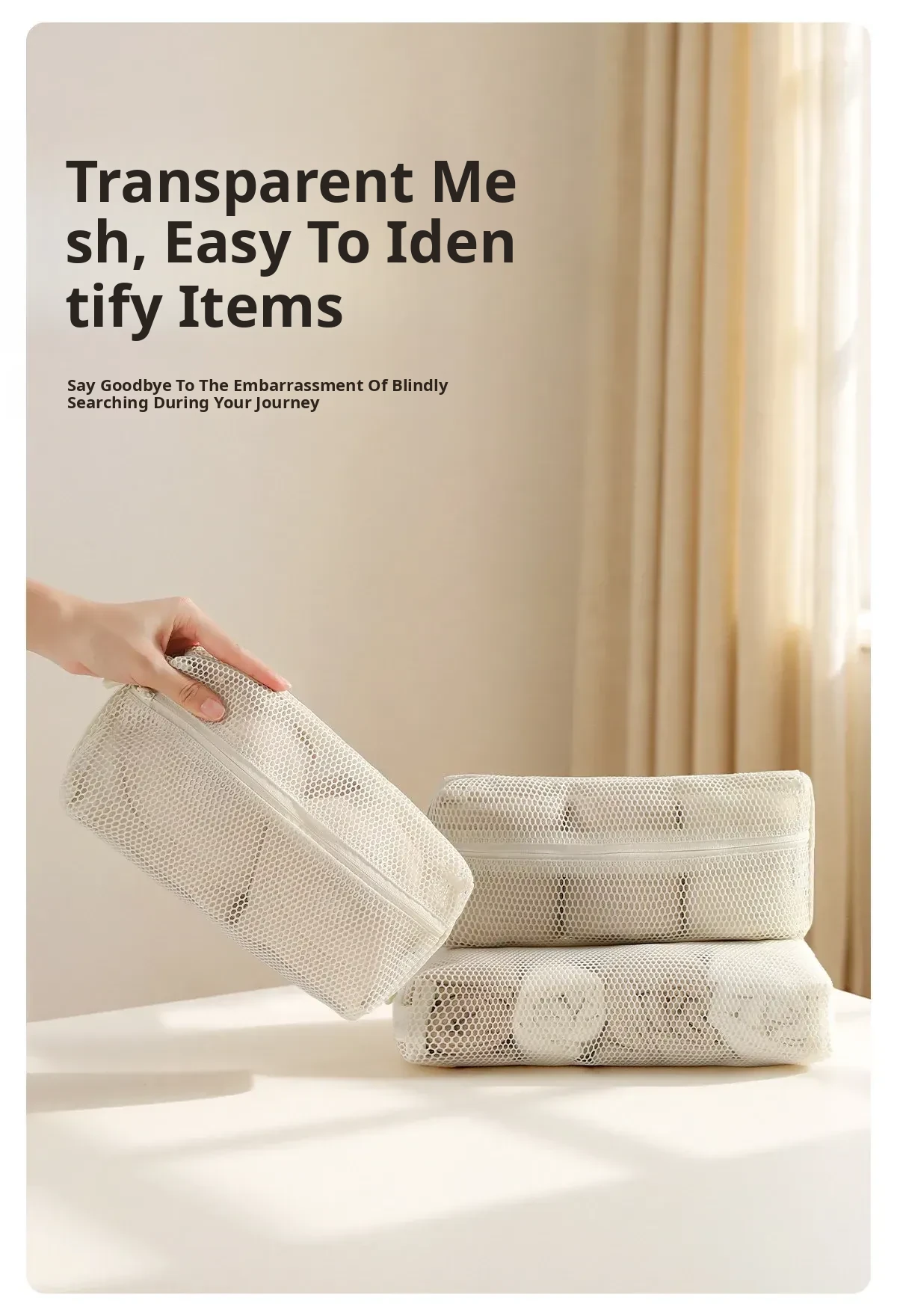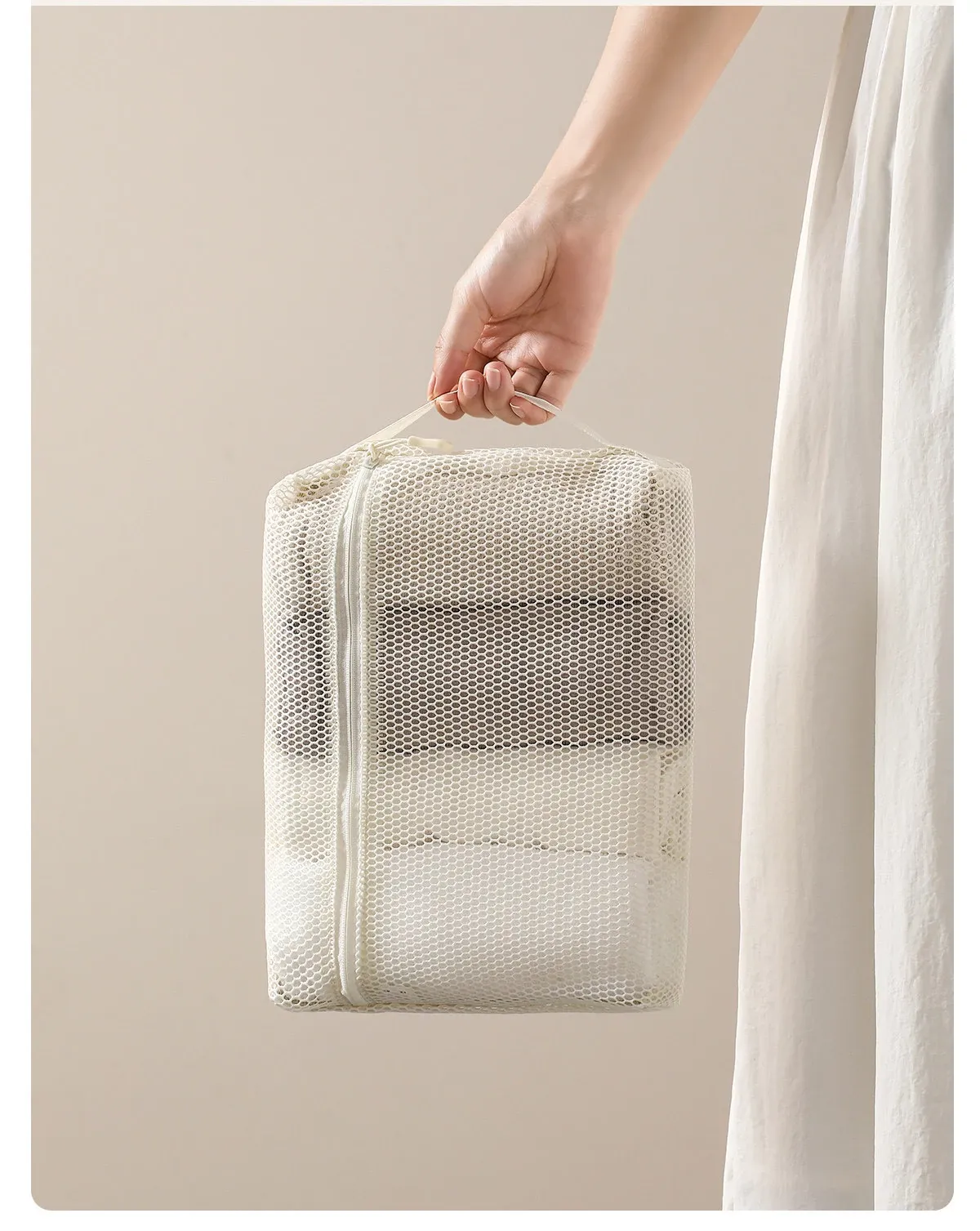 FaSoLa Travel Makeup Organizer - Portable Mesh Toiletry Bag with Quick-Dry Transparent Design for Easy Packing and On-the-Go Convenience