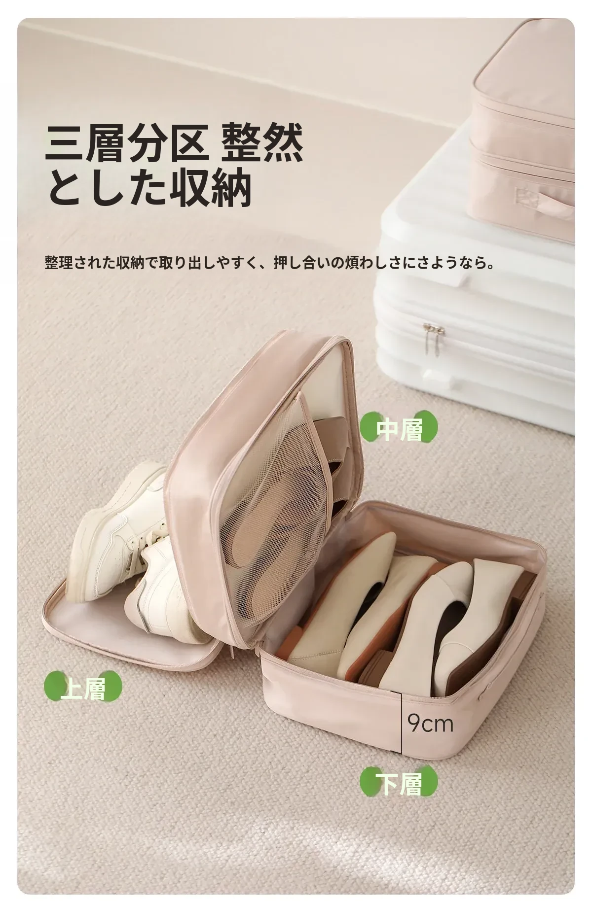 FaSoLa 旅行用シューズ収納バッグ - 出張や旅行に最適!靴をスッキリ整理できる便利な収納ボックス。靴の持ち運びが簡単で、スペースを有効活用できる必需品!