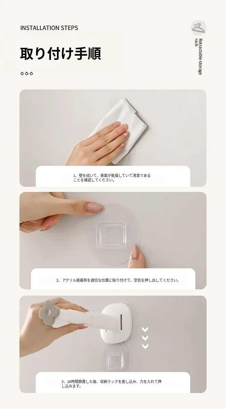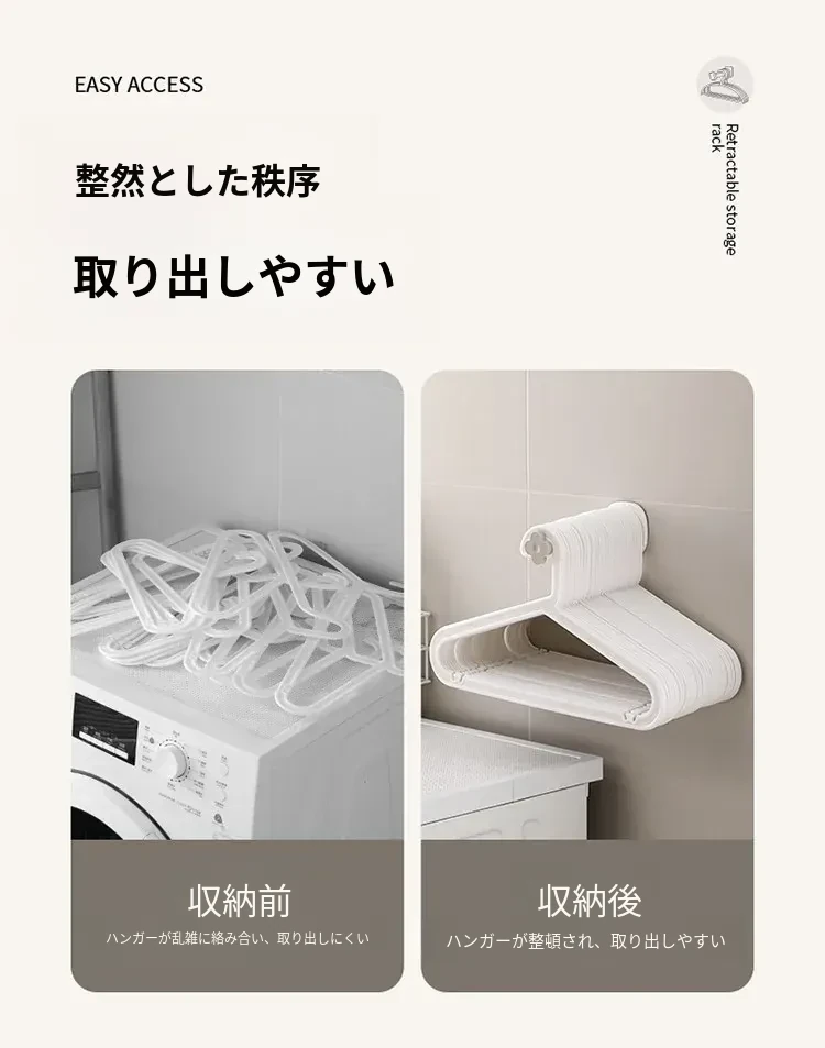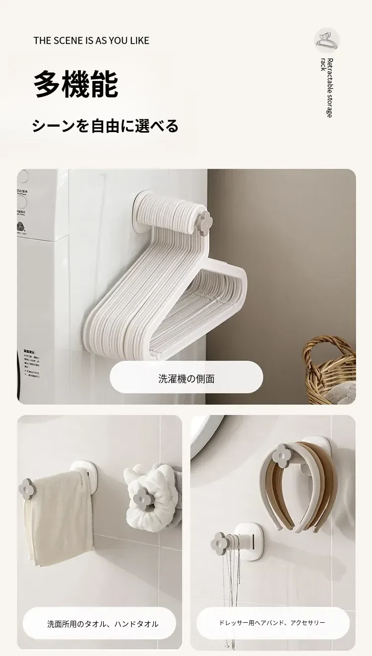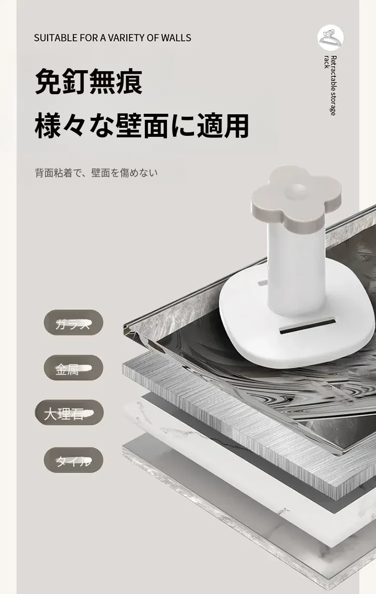 FaSoLaハンガー収納ラック|穴あけ不要の家庭用バルコニー壁掛け式|伸縮可能な衣類干し&整理フックで、スッキリ収納!