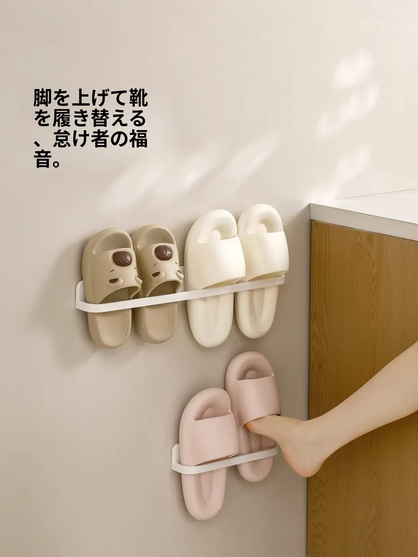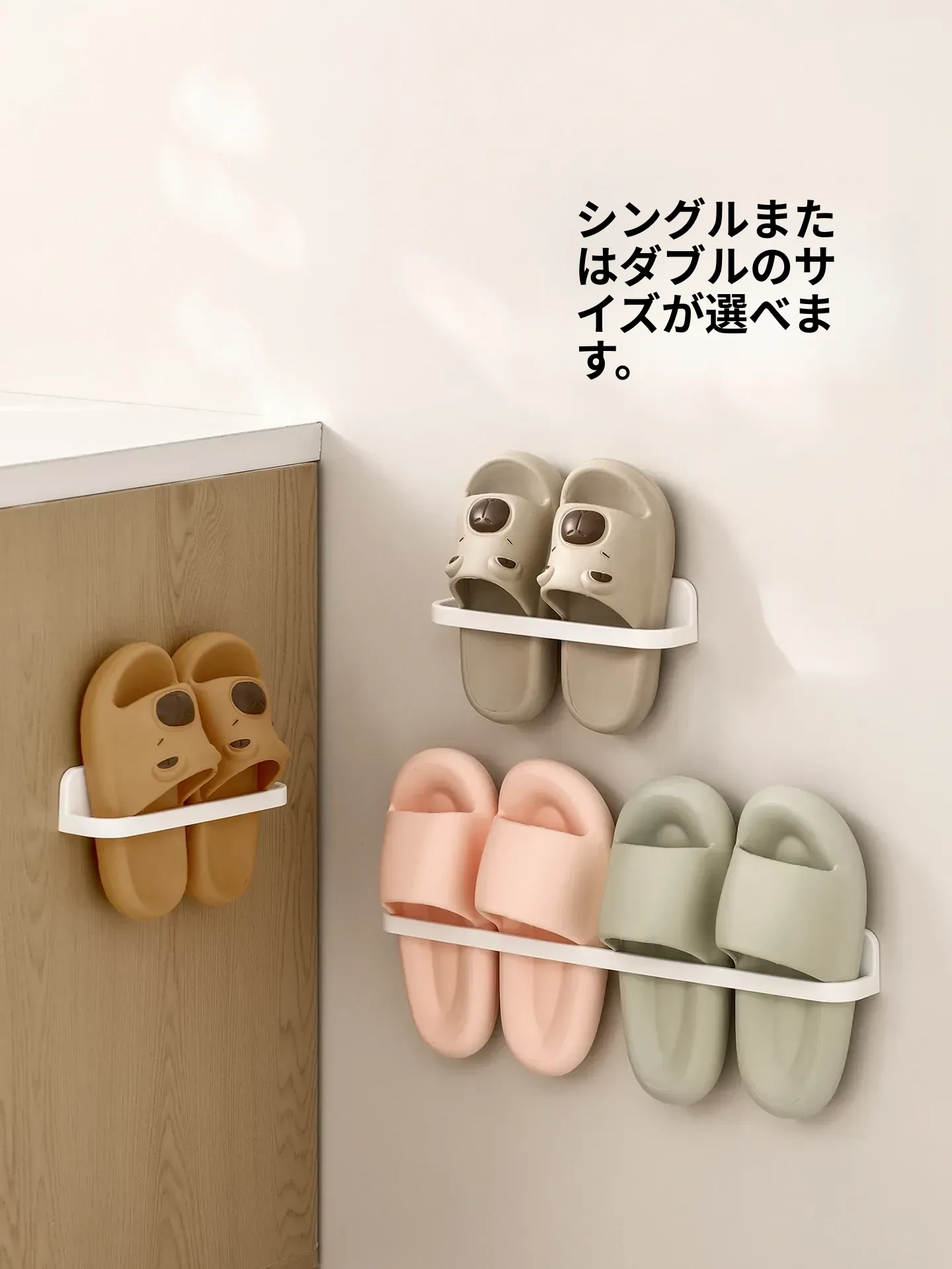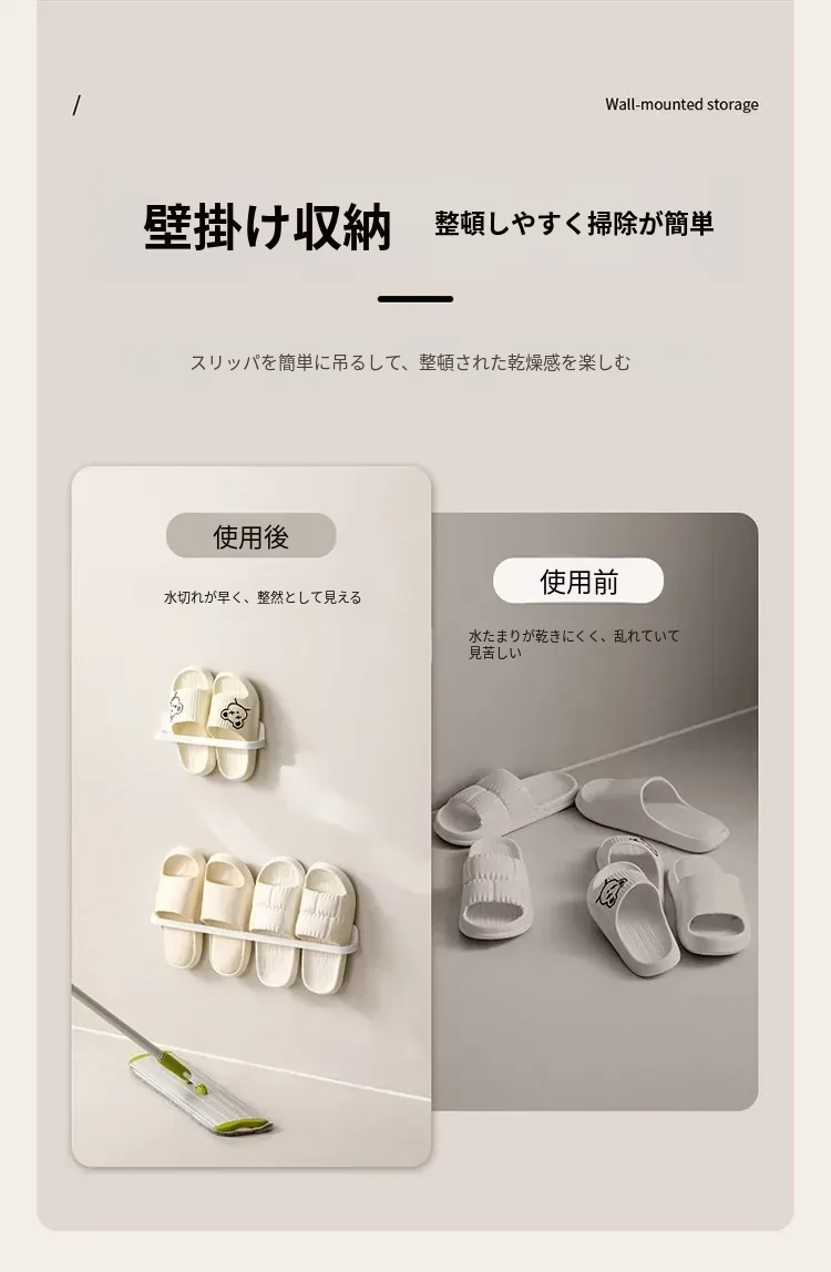 FaSoLaスリッパホルダー バスルーム用水切りラック トイレ収納 取り付け不要の壁掛けシューズラック 家庭用スリッパ整理に最適!快適な生活空間を実現します。