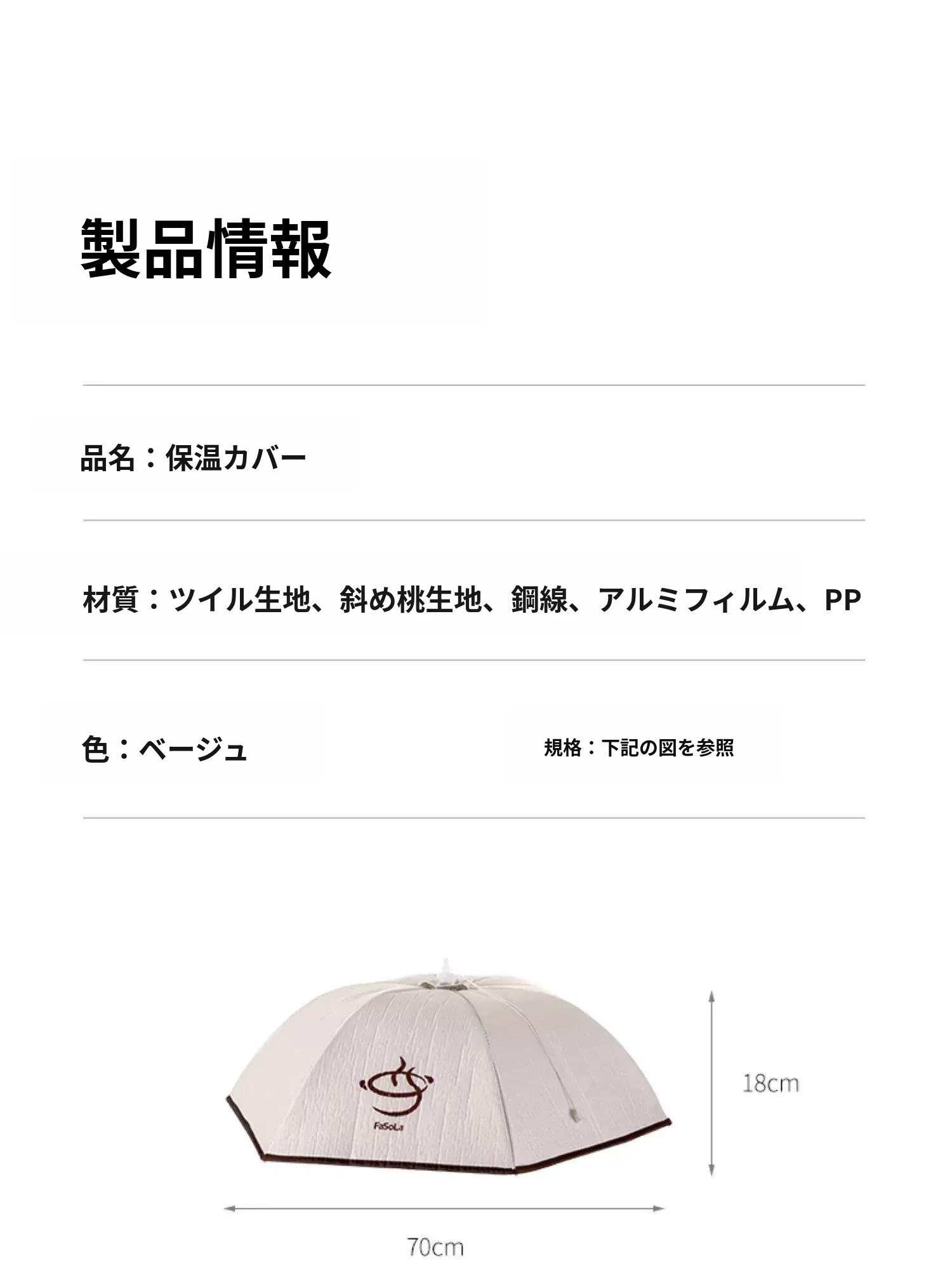 FaSoLa保温カバー 冬の2026新作 家庭用 折りたたみ式 食卓カバー 残り物や食材を守る 防塵カバー おしゃれで便利なアイテム!