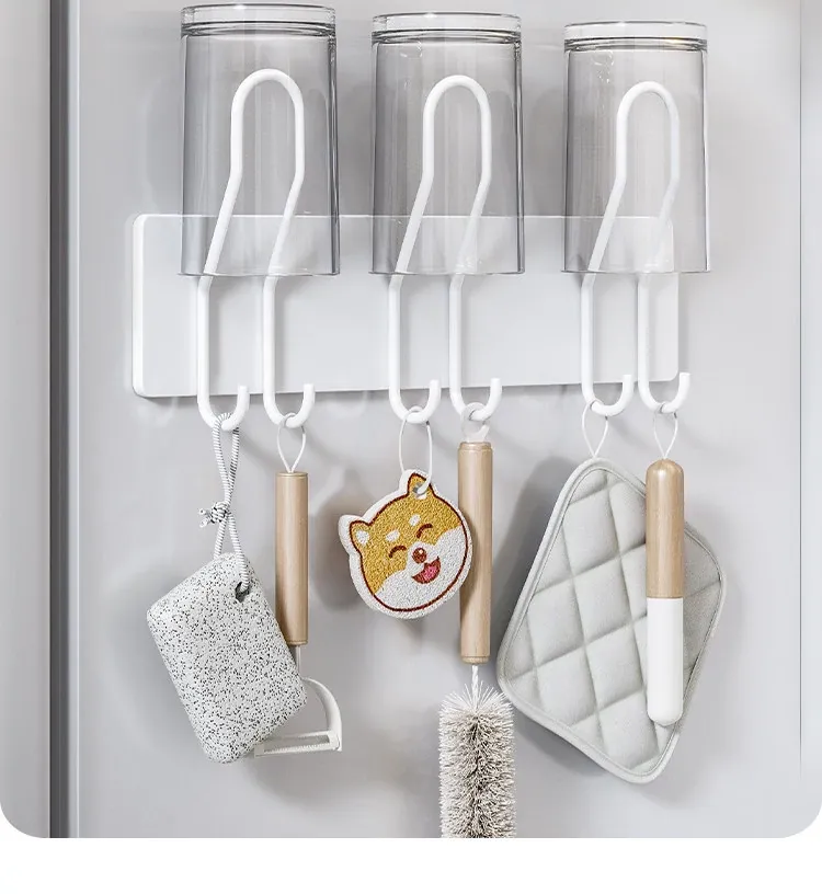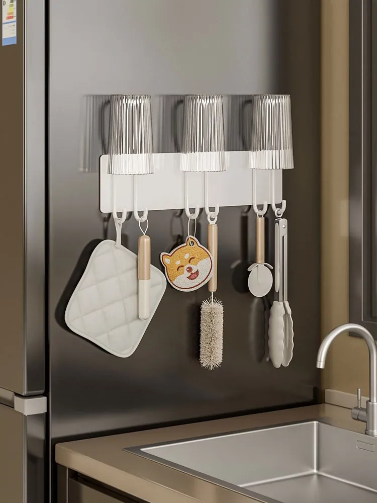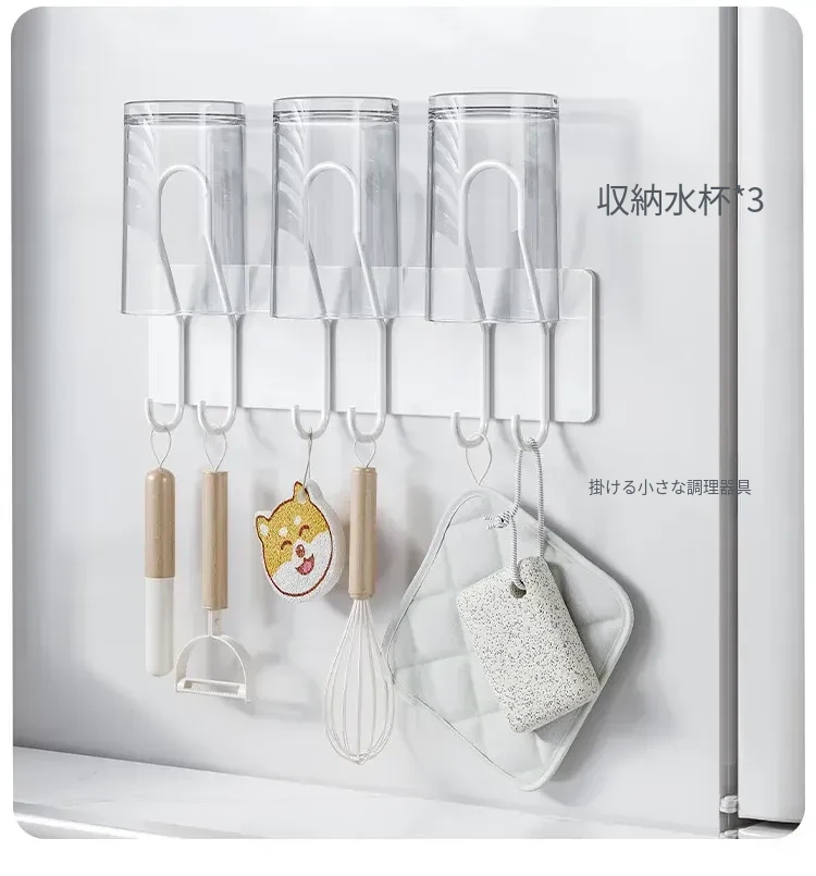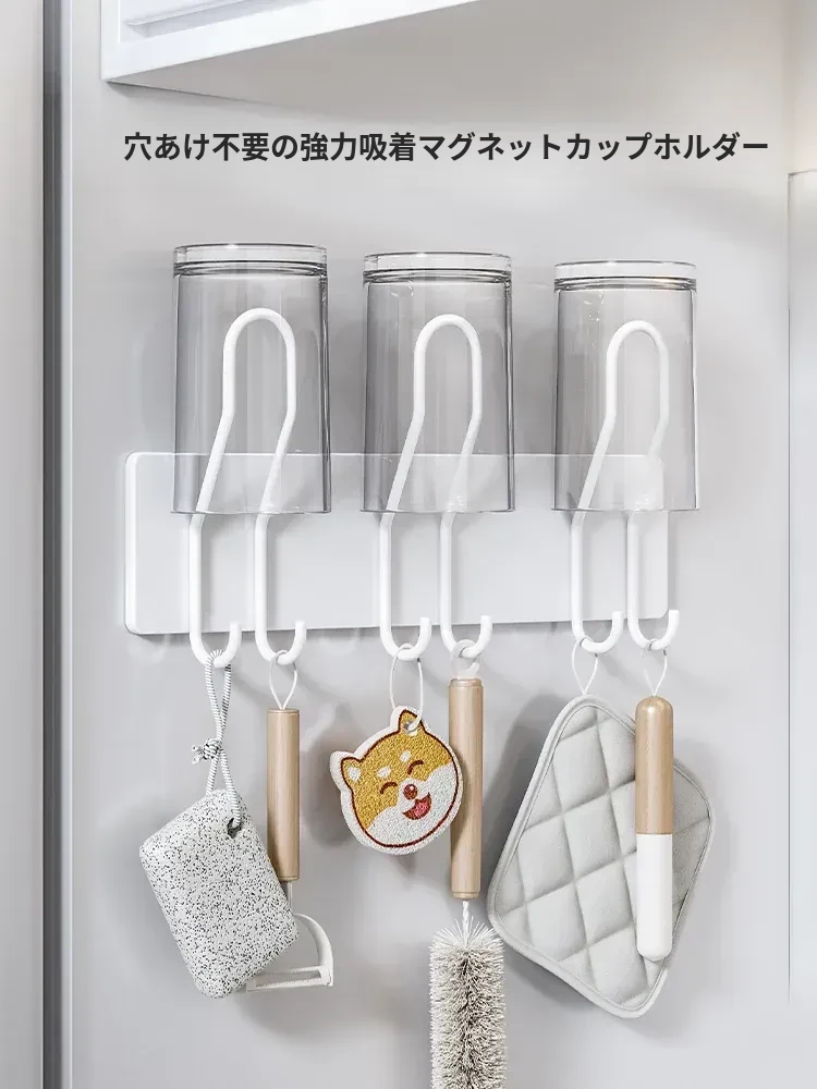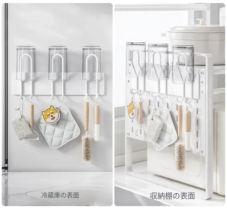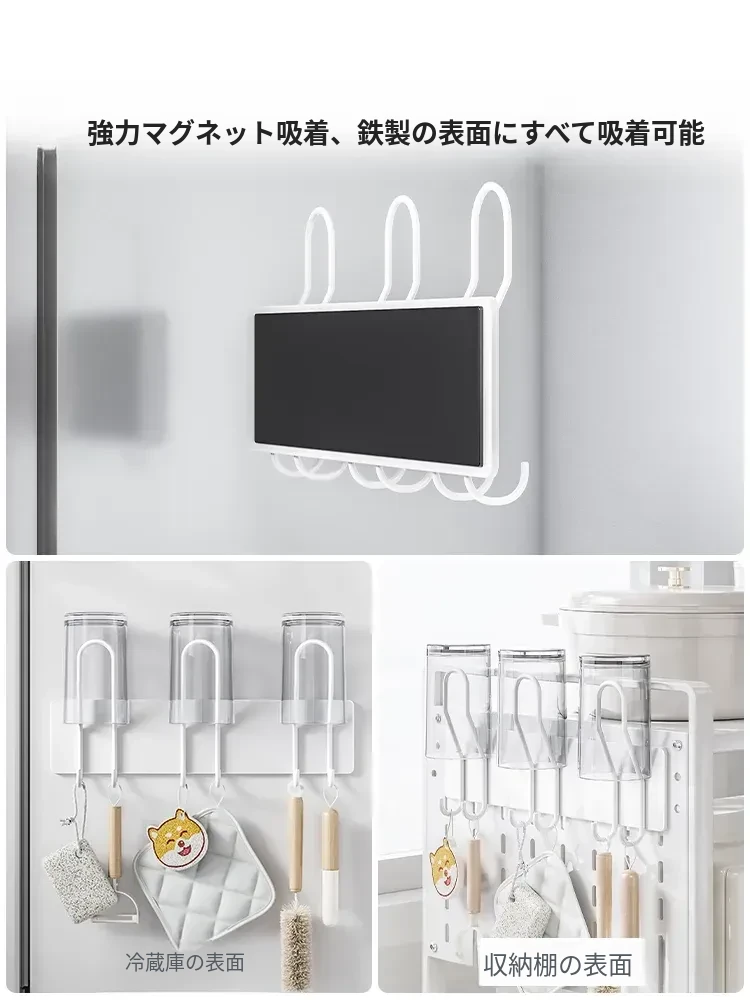 冷蔵庫サイド収納マグネット式ラック - キッチンに最適なフックで、穴なしで取り付け簡単!家庭用水筒や調理器具をスッキリ収納できる壁掛け式。スマートなキッチンを実現!