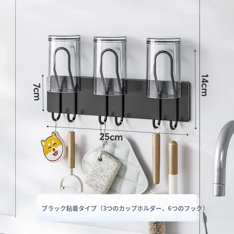 【接着剤ブラック】3カップ6フック