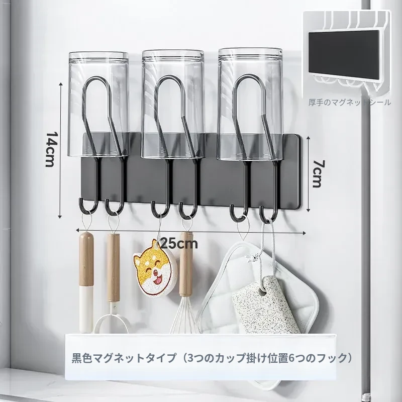 【マグネットブラック】3カップ6フック