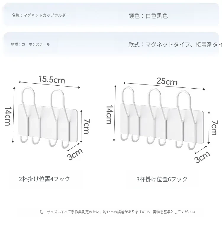 【マグネットホワイト】3カップ6フック