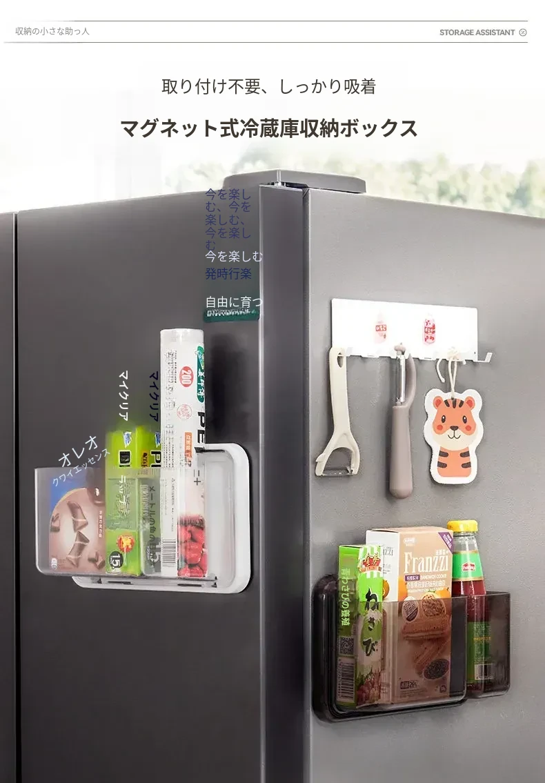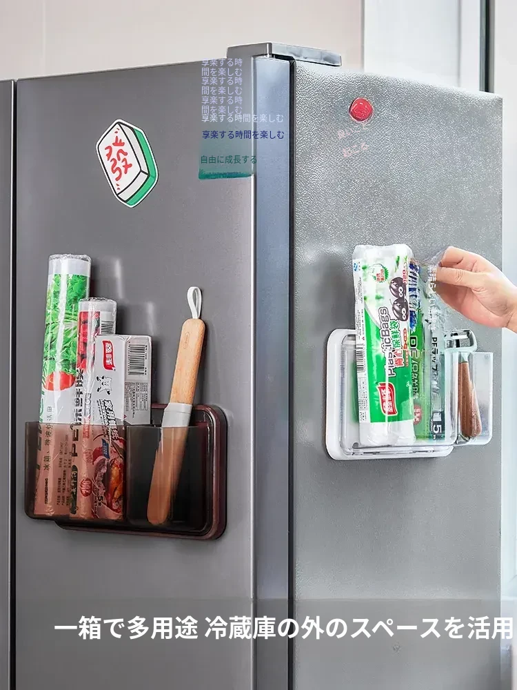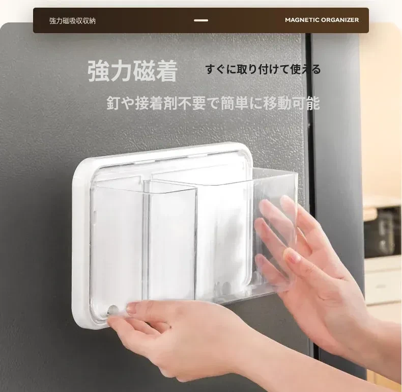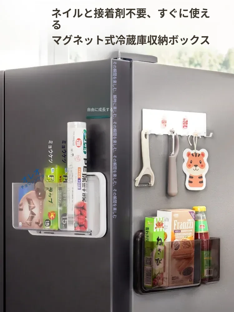 冷蔵庫サイドマグネット収納ラック - 便利な壁掛け収納ボックス!冷蔵庫の裏や玄関に最適なマスク収納にも使える!スペースを有効活用して、スッキリ整理整頓!