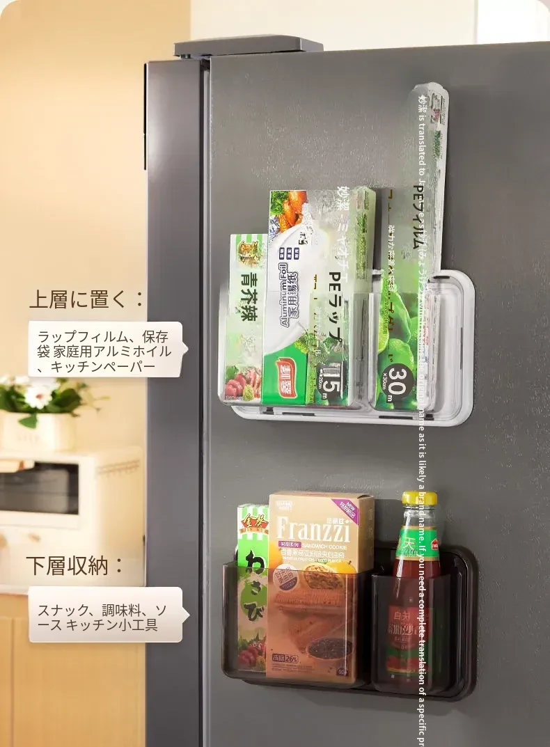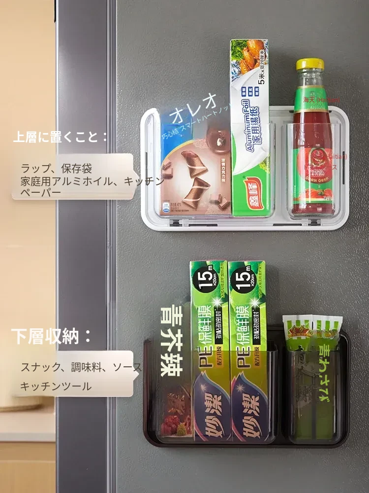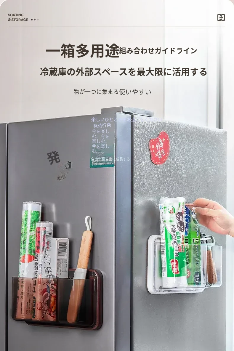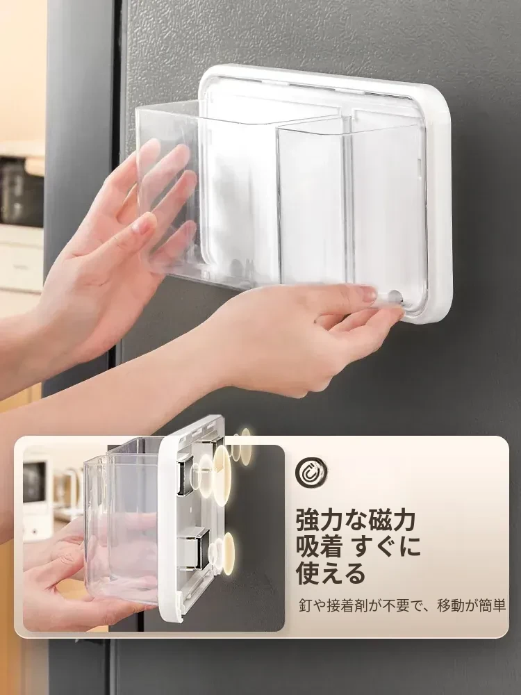 冷蔵庫サイドマグネット収納ラック - 便利な壁掛け収納ボックス!冷蔵庫の裏や玄関に最適なマスク収納にも使える!スペースを有効活用して、スッキリ整理整頓!