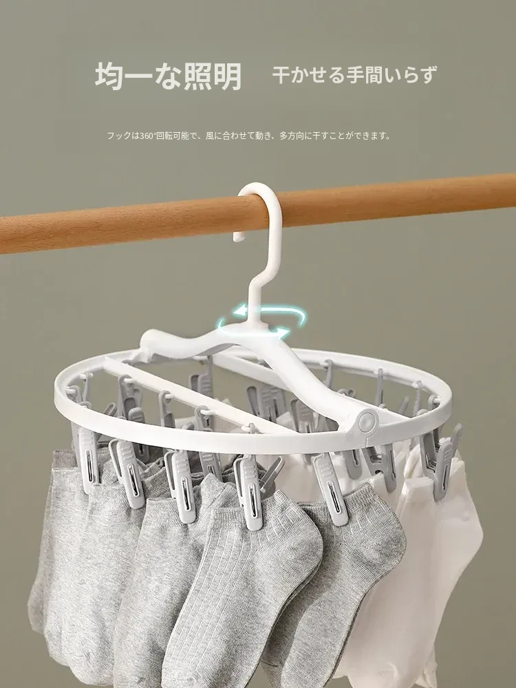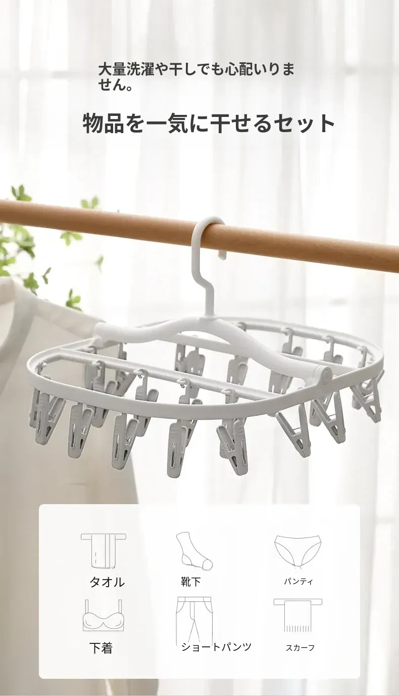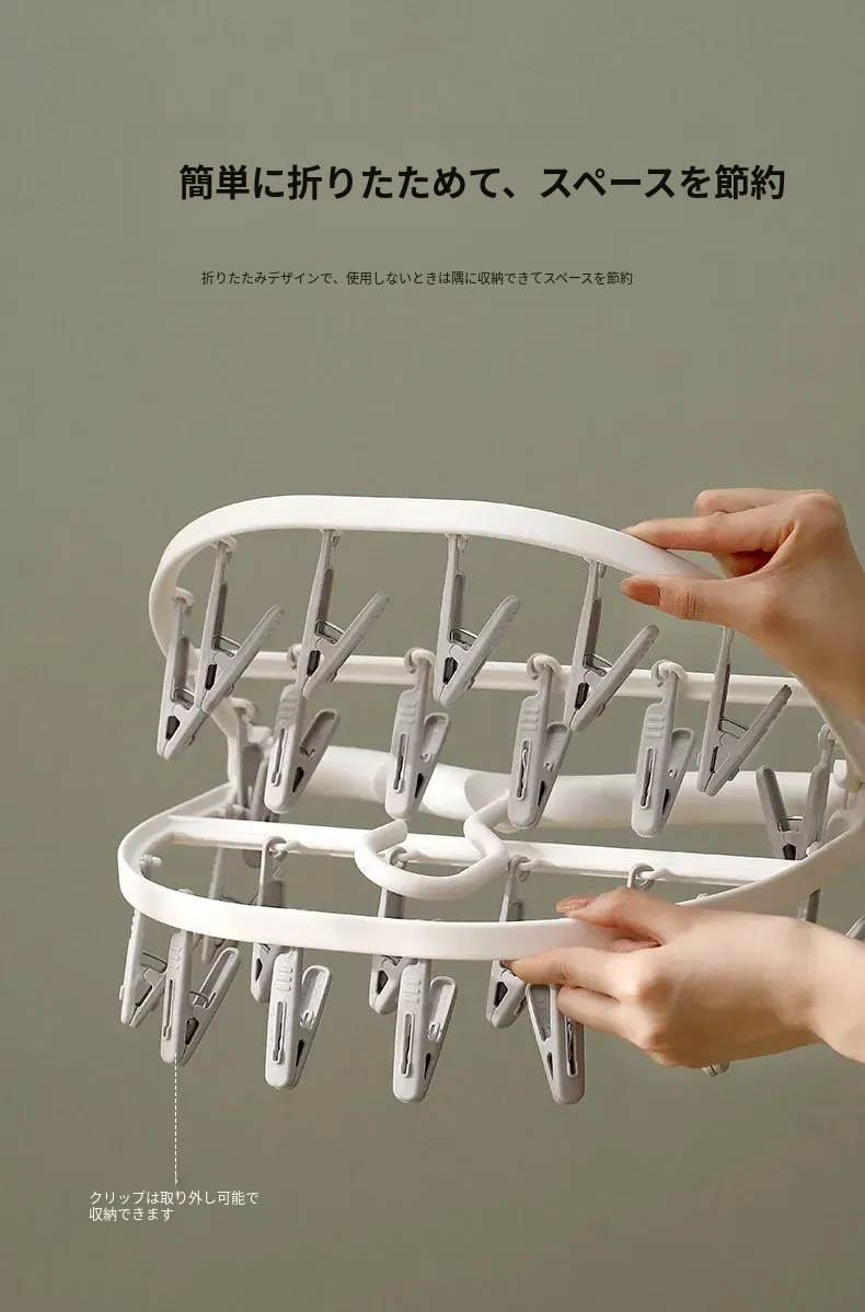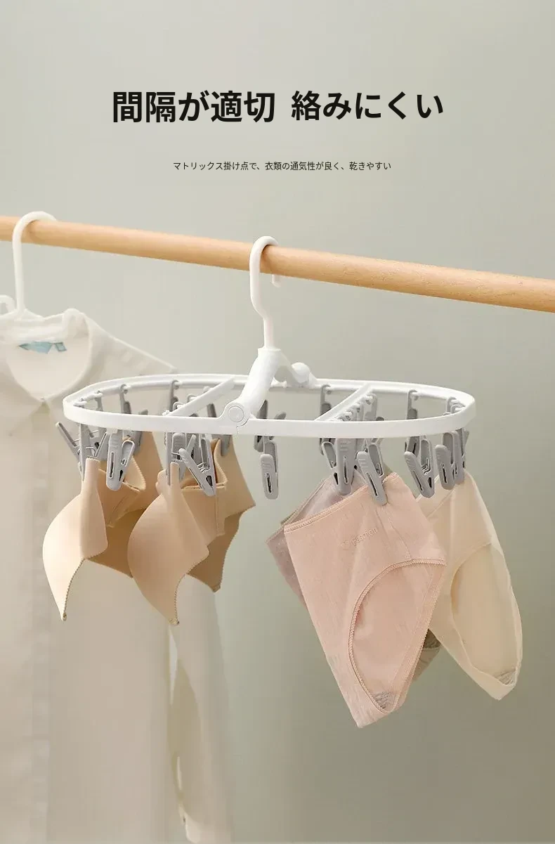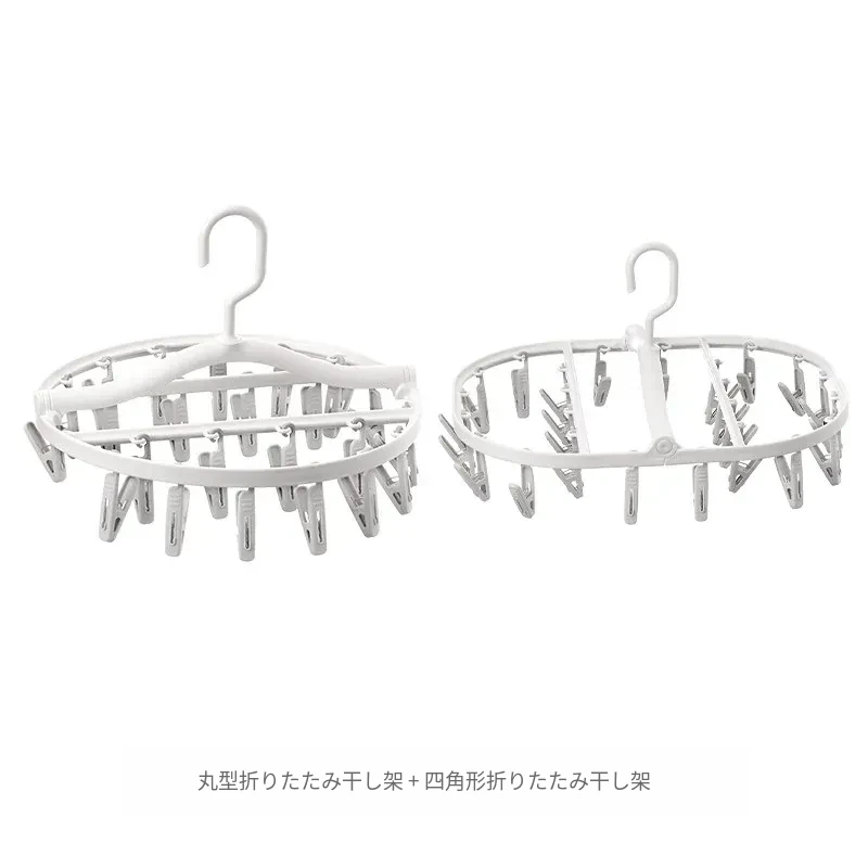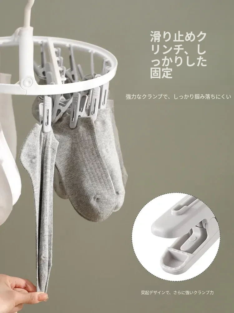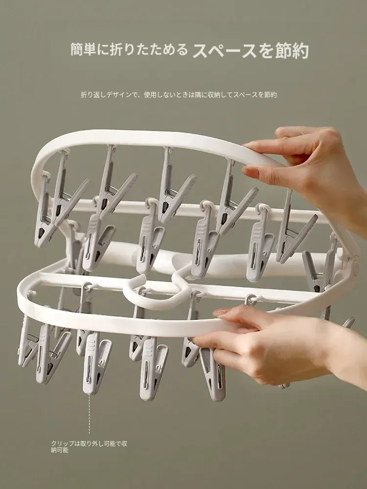 多機能靴下・下着干しハンガー - 風に強いプラスチック製、折りたたみ式で省スペース!バルコニーや寮での使用に最適、洗濯物をしっかり固定するクリップ付き。快適な生活をサポート!