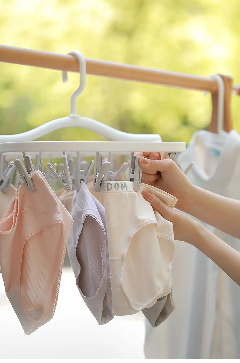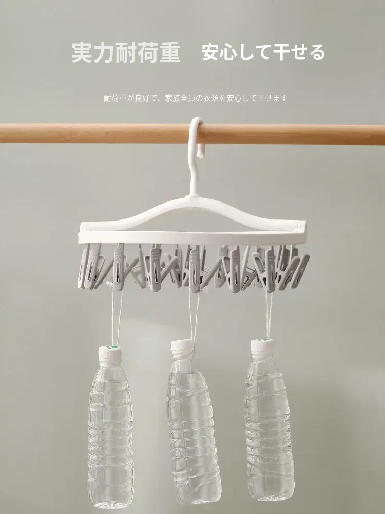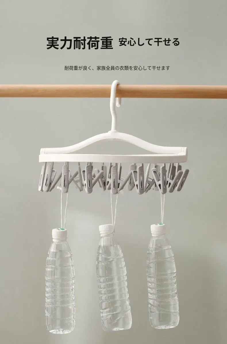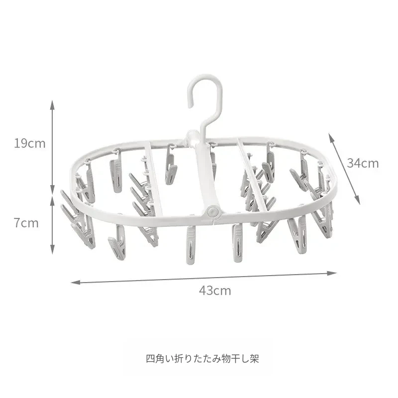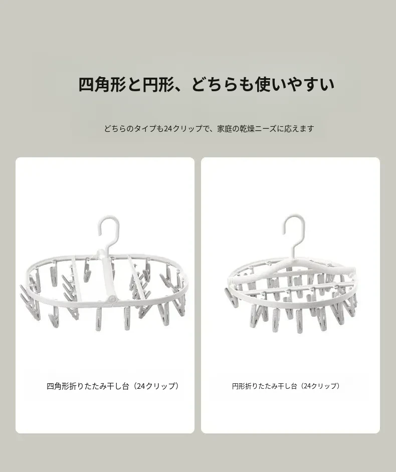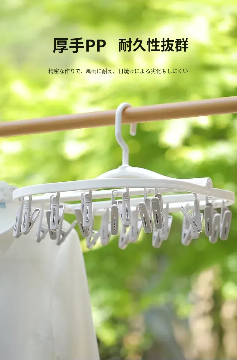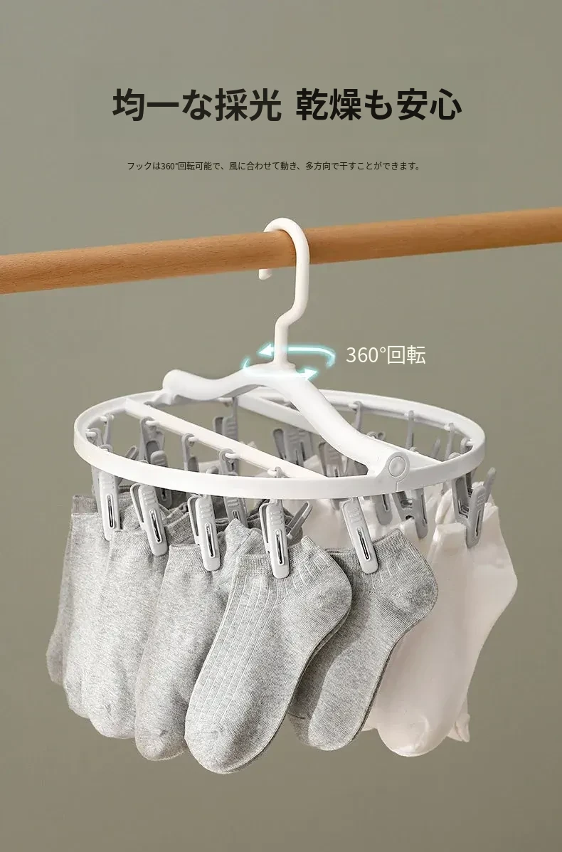 多機能靴下・下着干しハンガー - 風に強いプラスチック製、折りたたみ式で省スペース!バルコニーや寮での使用に最適、洗濯物をしっかり固定するクリップ付き。快適な生活をサポート!