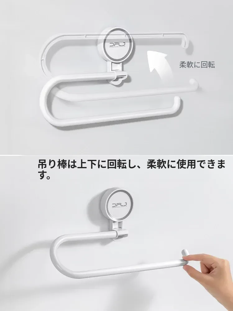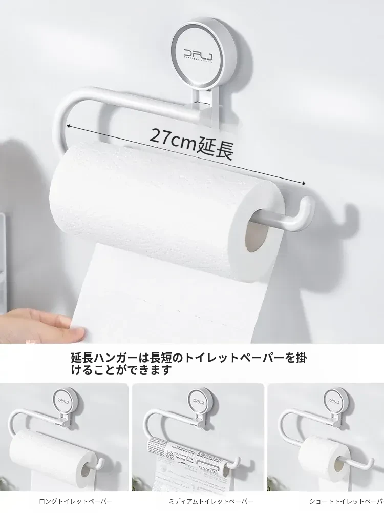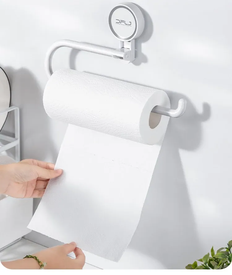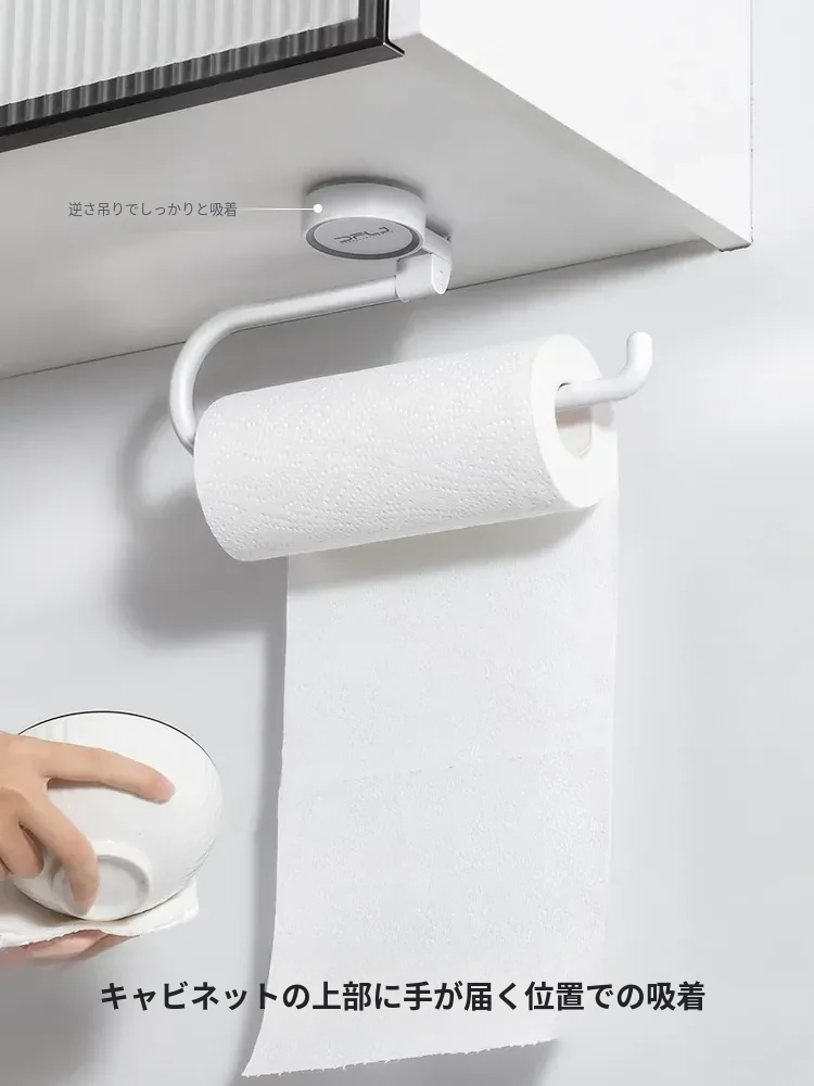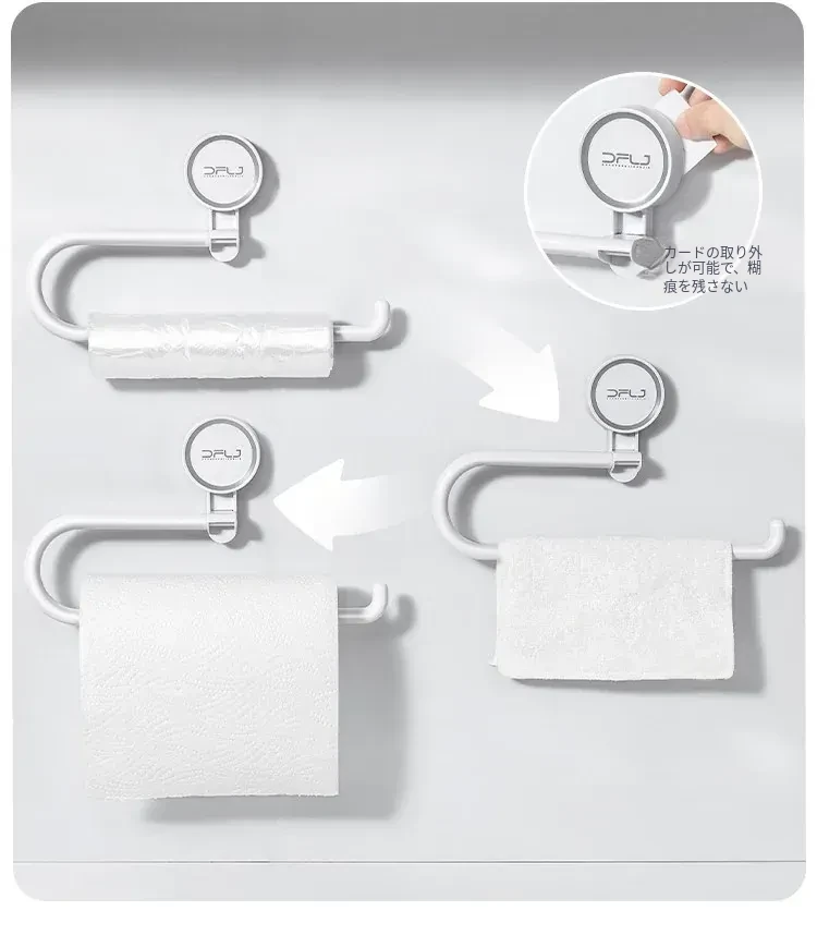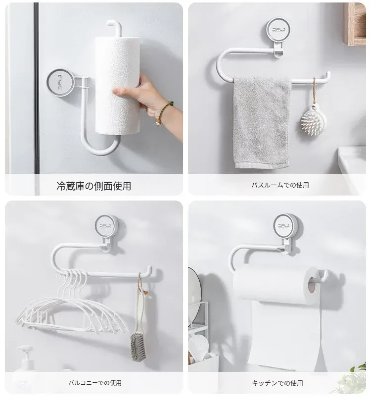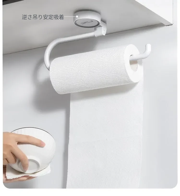 キッチンの穴あけ不要!多機能吸盤式ラップ・ペーパータオルホルダー 壁掛けタイプで収納力抜群、清潔感あふれるスペースを実現!便利なふきん掛けも付いて、使いやすさ満点!