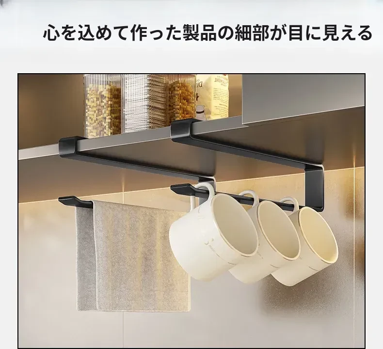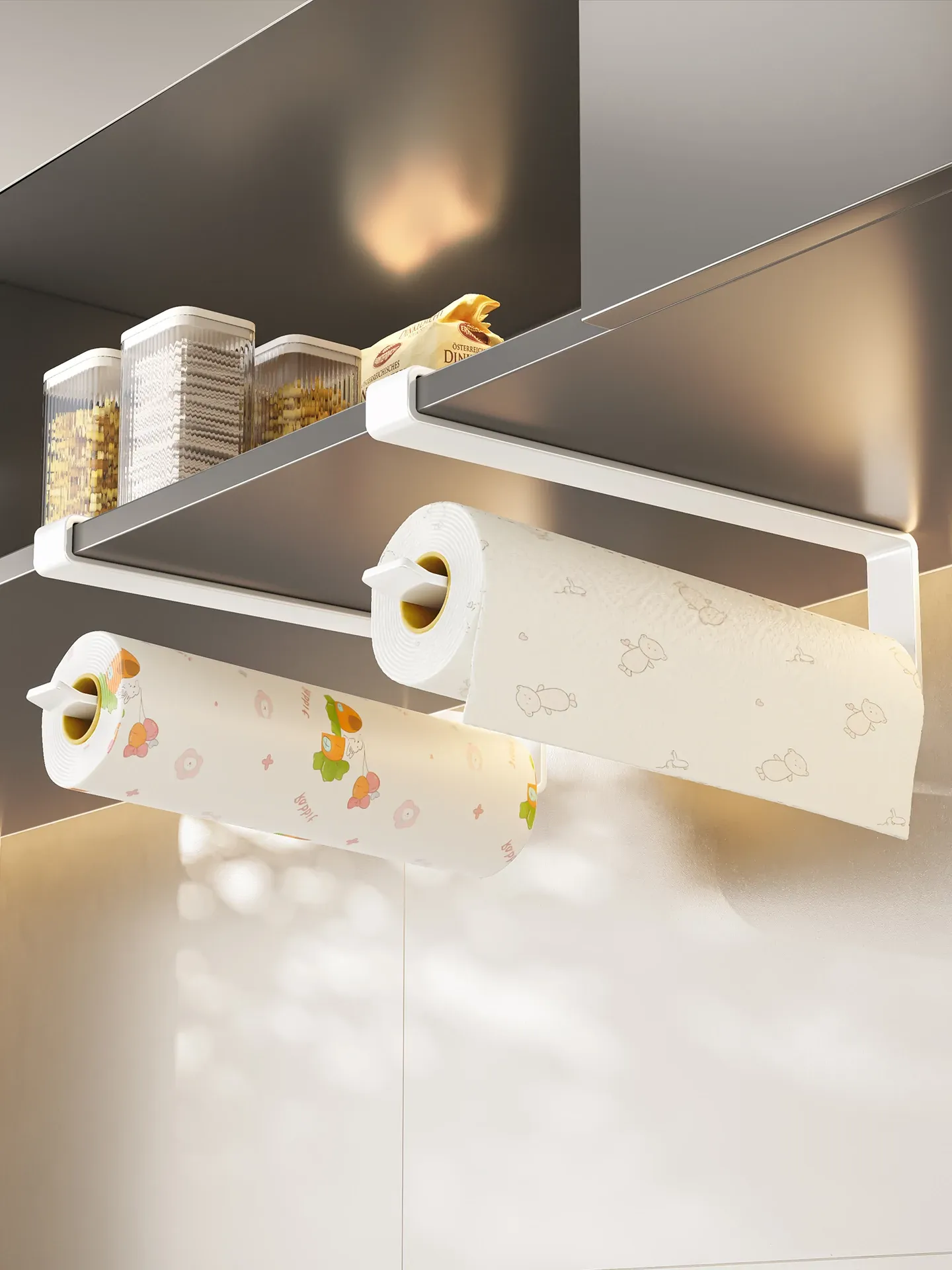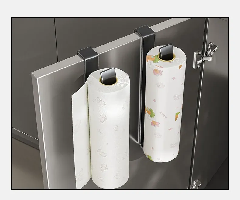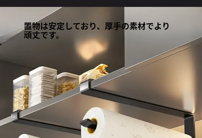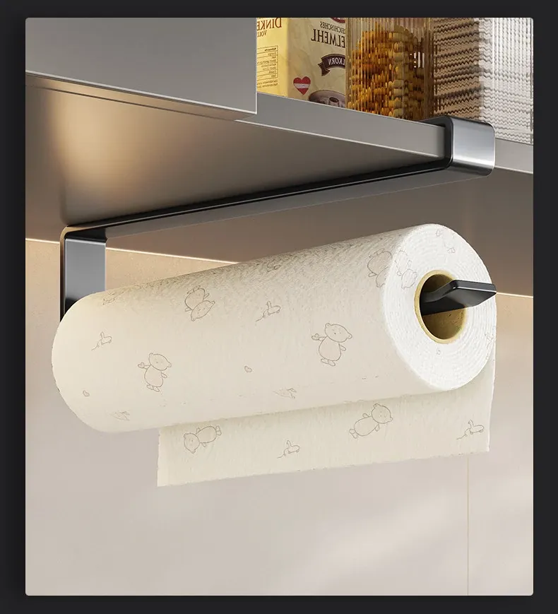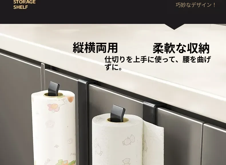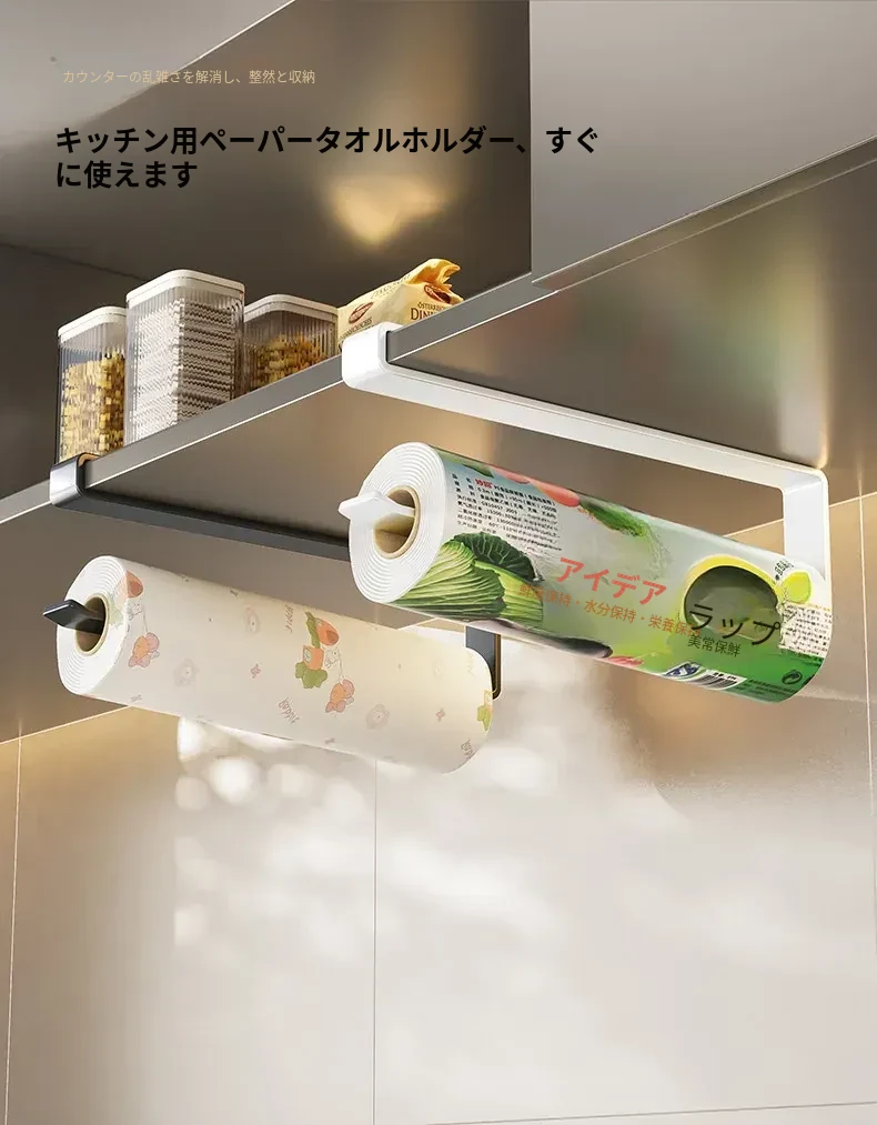 穴あけ不要!キッチンペーパーラック - キャビネット下にぴったりの吊り下げ式収納!油吸収・ラップなどの整理に最適な便利なアイテム!