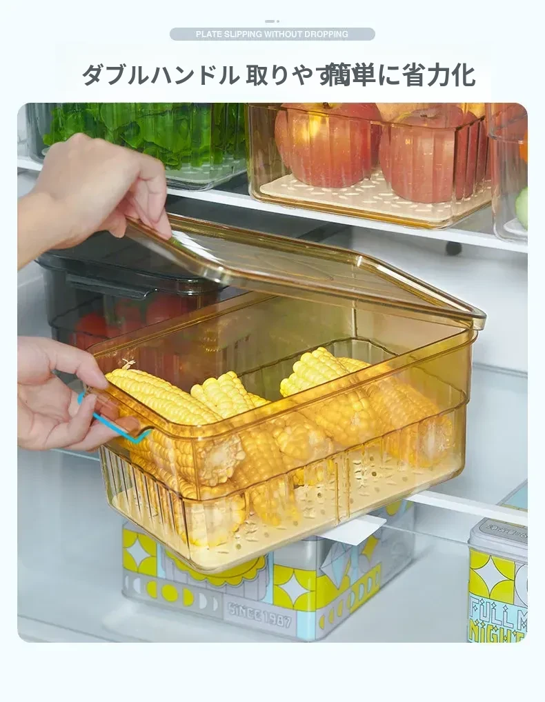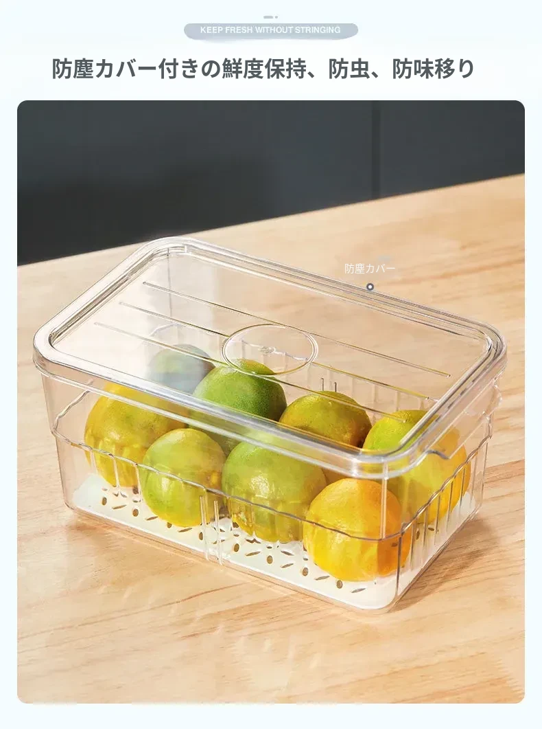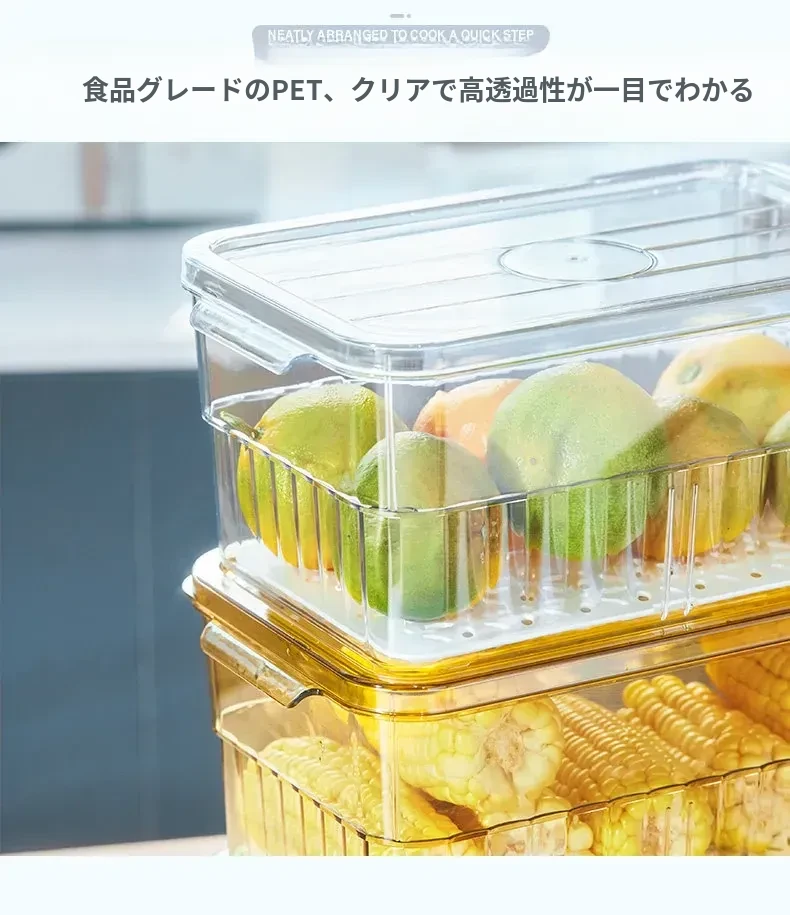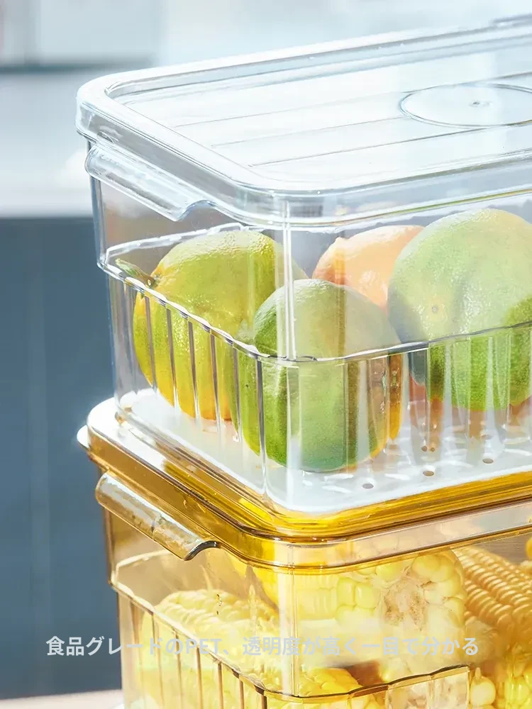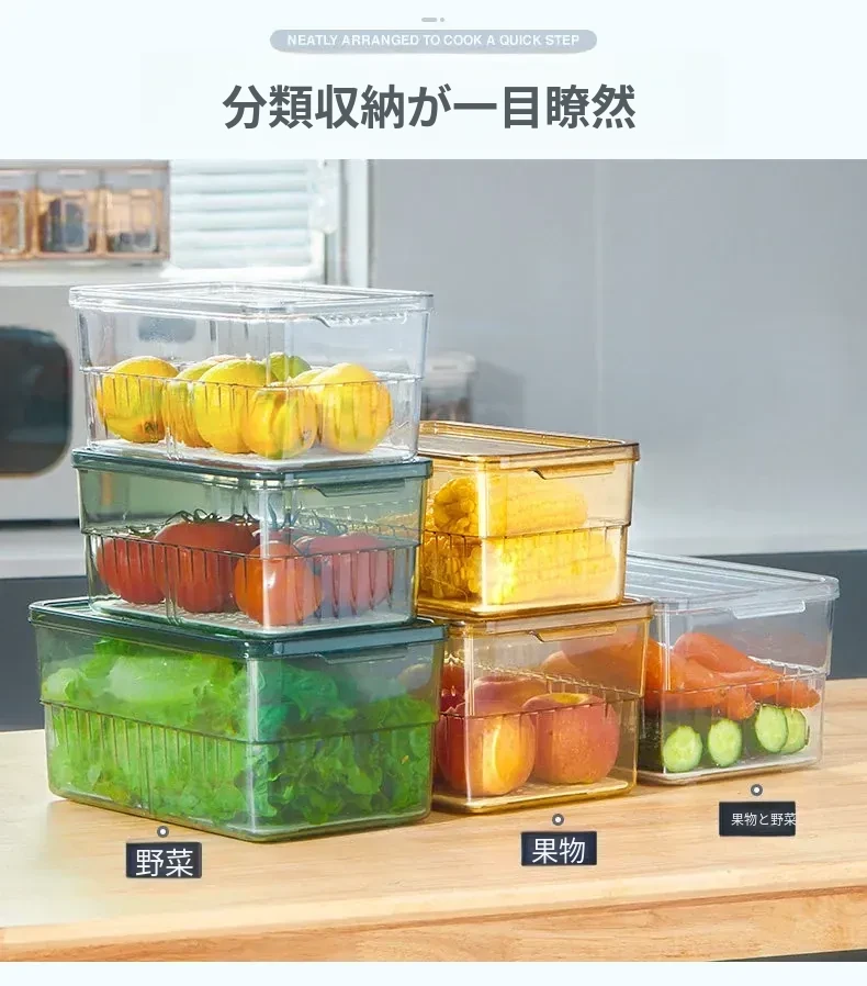冷蔵庫専用食品保存ボックス | 大容量で野菜・果物・卵を整理整頓!冷凍分けもできる安全な食品グレード素材使用!新鮮さを保ちながらスッキリ収納!