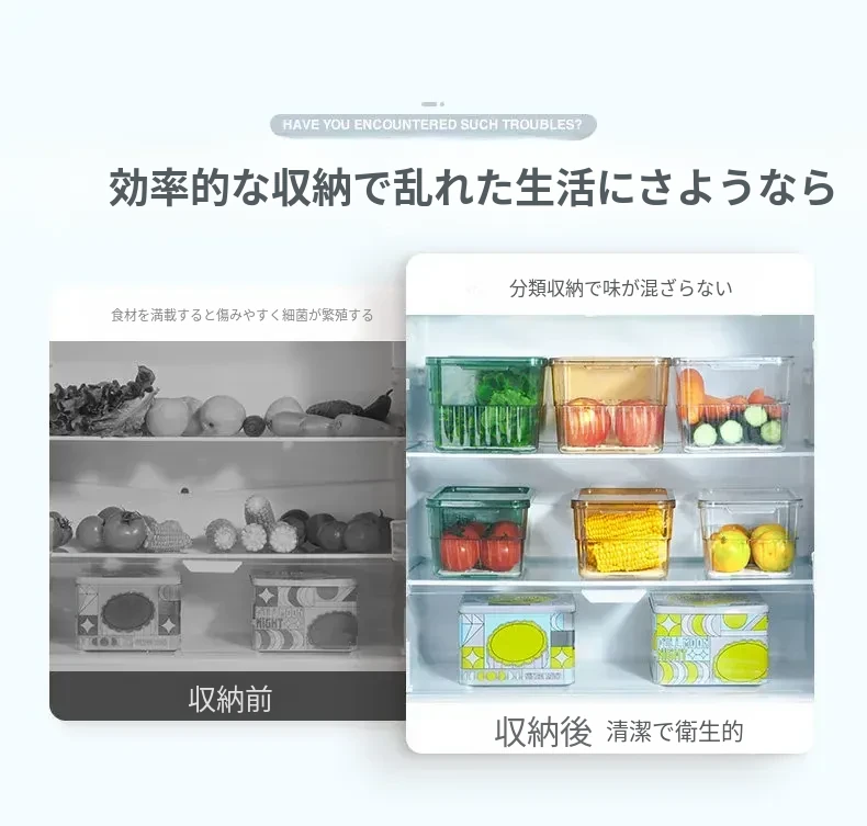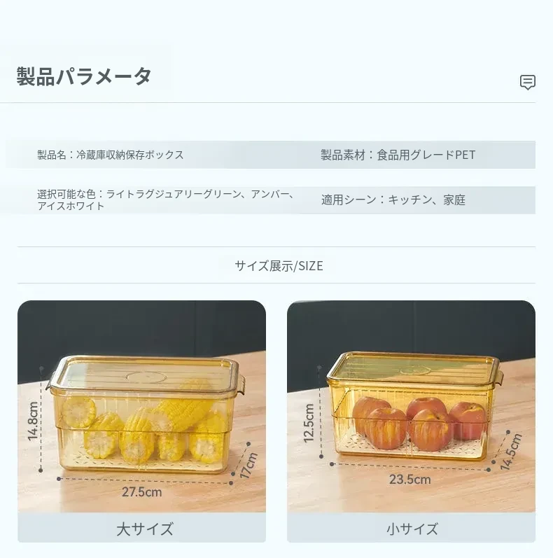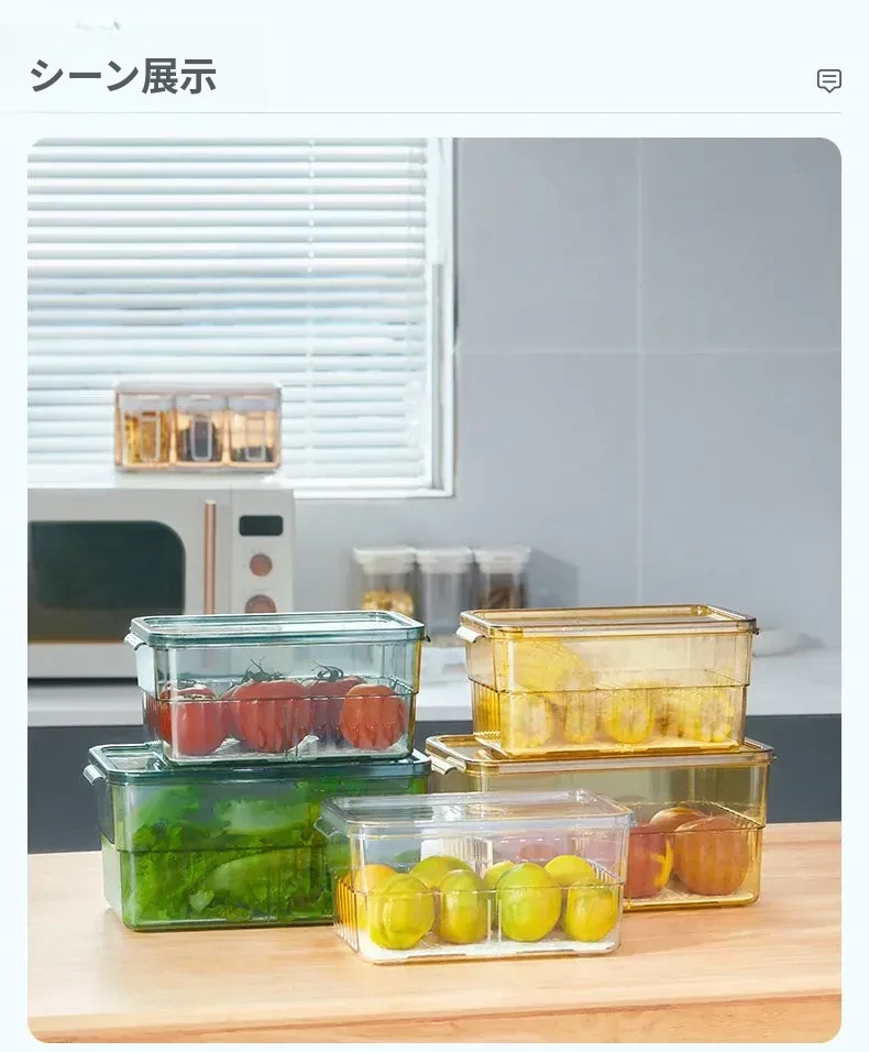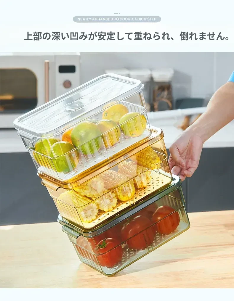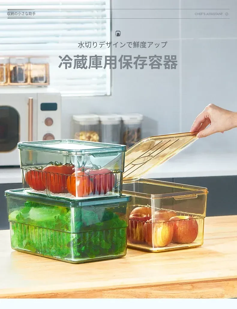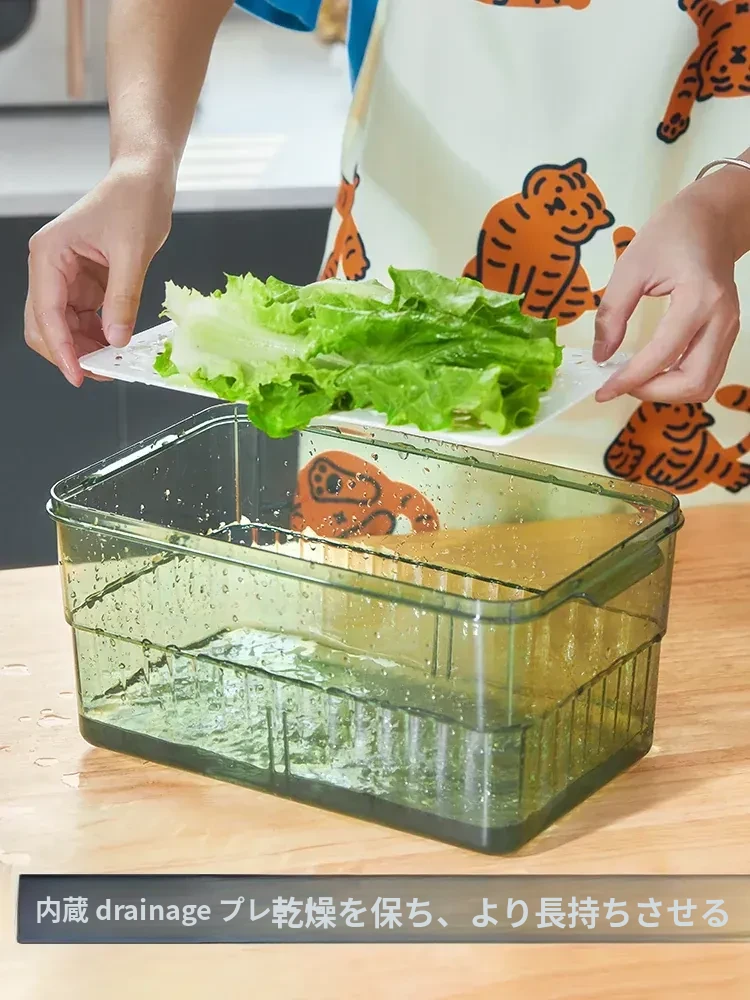 冷蔵庫専用食品保存ボックス | 大容量で野菜・果物・卵を整理整頓!冷凍分けもできる安全な食品グレード素材使用!新鮮さを保ちながらスッキリ収納!