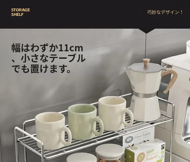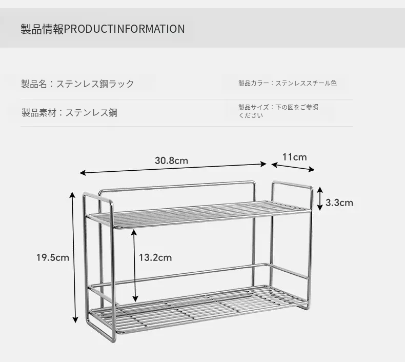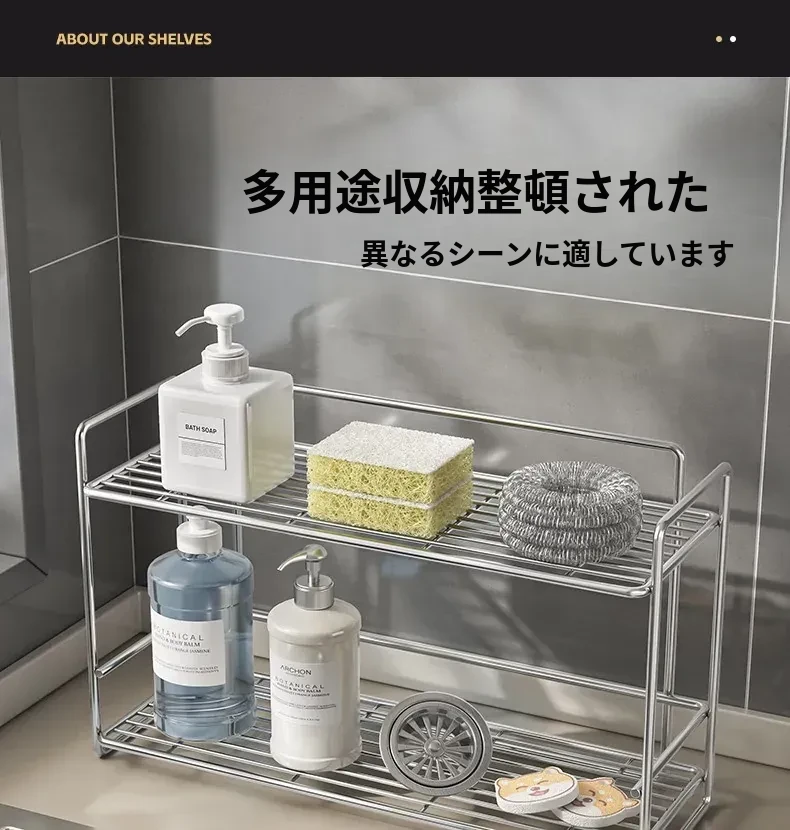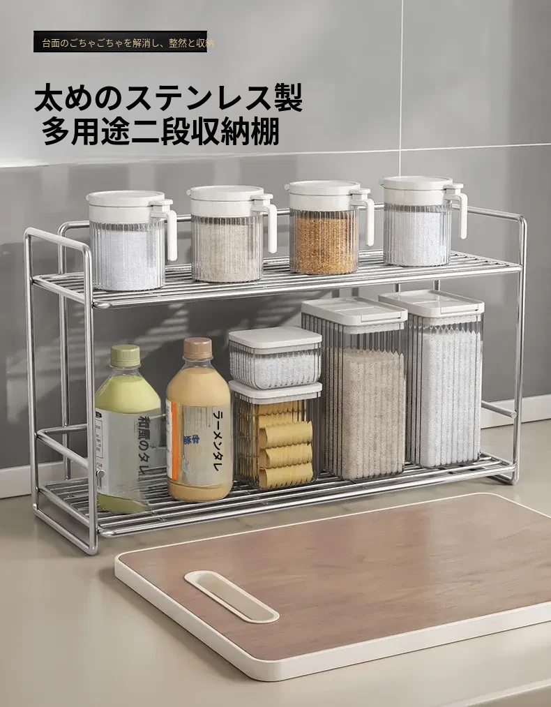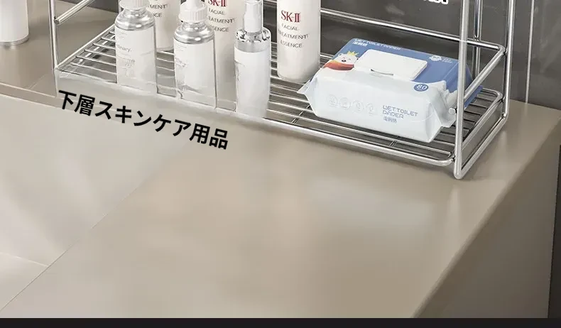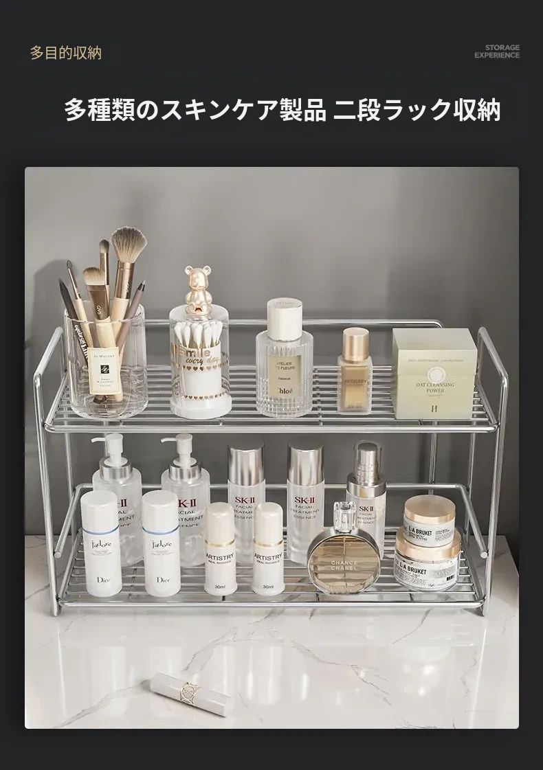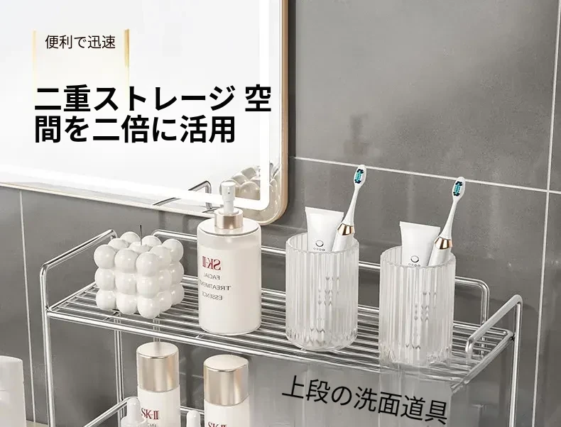 シンプルなステンレス製メタル調味料ラック - 家庭用カップ収納棚&化粧品整理に最適!クリーンでスタイリッシュなデザインで、キッチンや洗面所をスマートに整頓。
