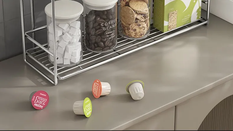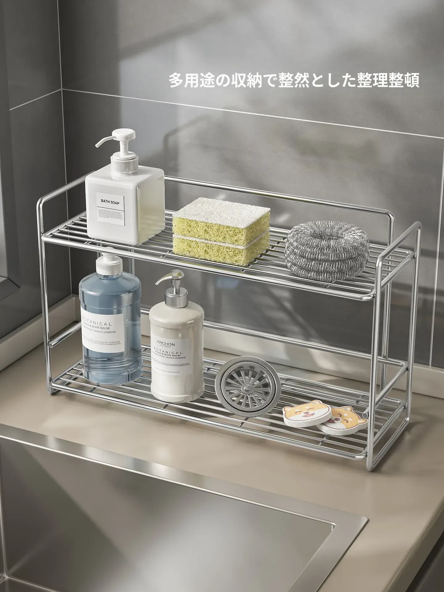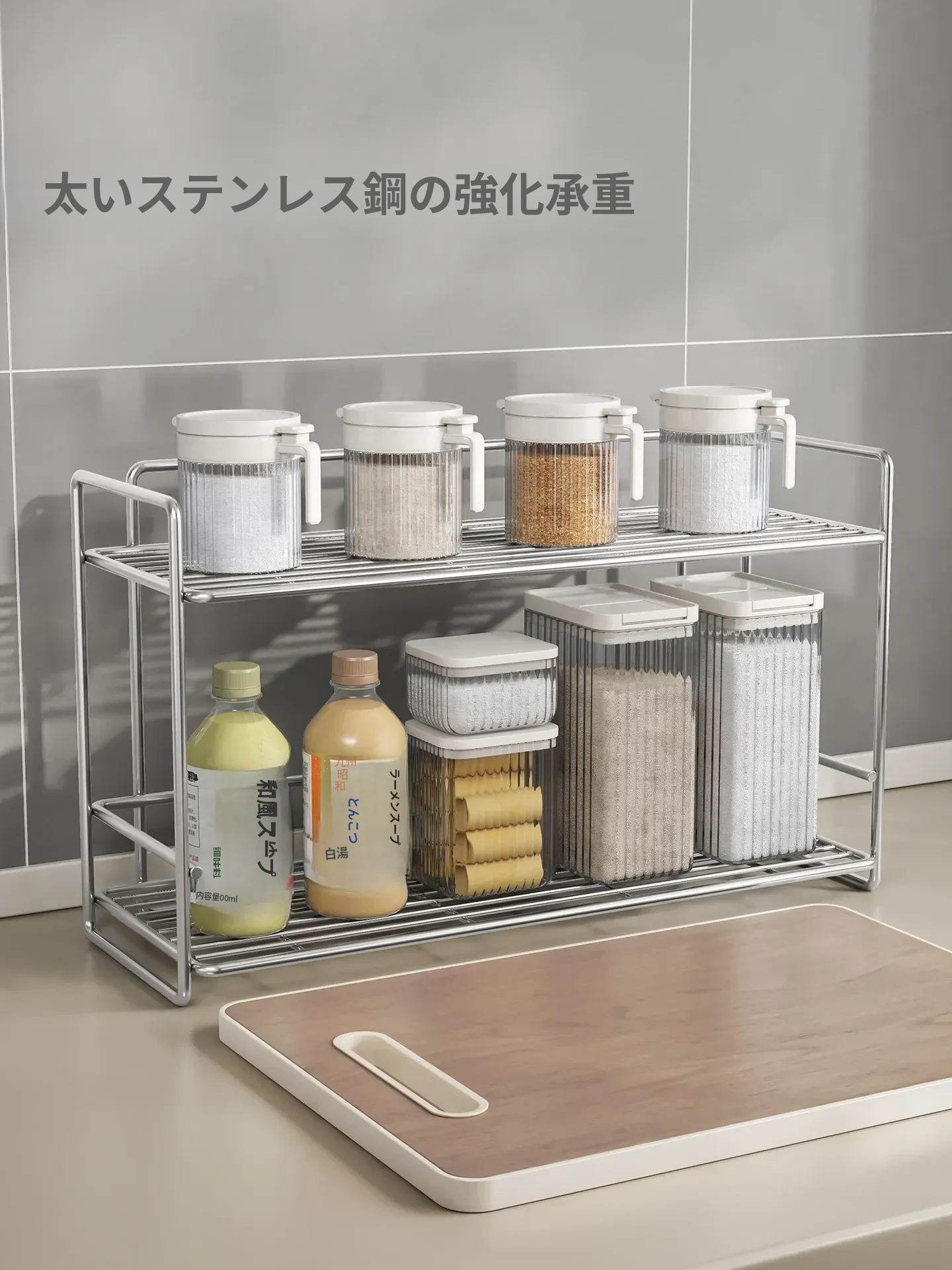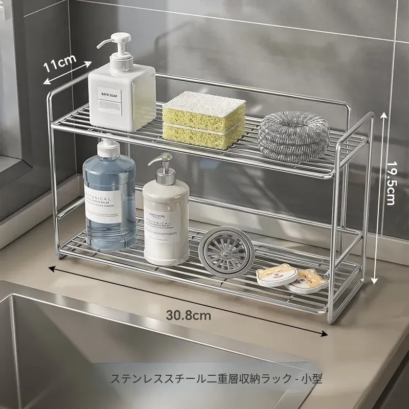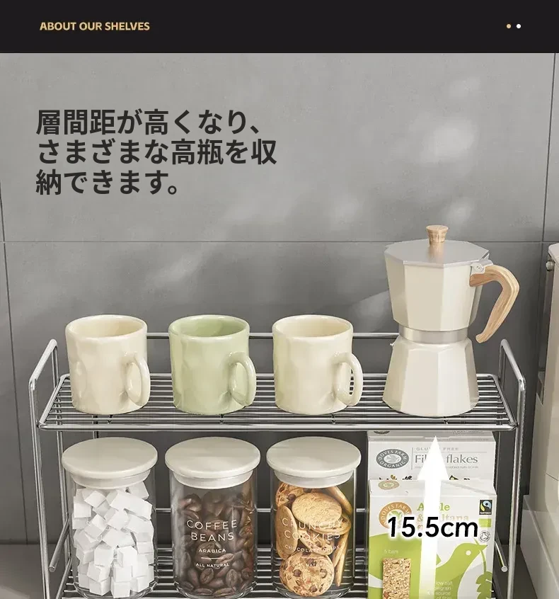 シンプルなステンレス製メタル調味料ラック - 家庭用カップ収納棚&化粧品整理に最適!クリーンでスタイリッシュなデザインで、キッチンや洗面所をスマートに整頓。