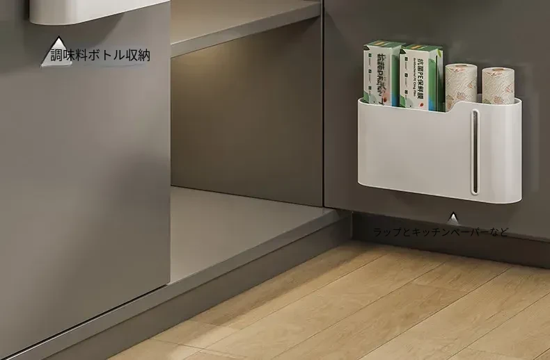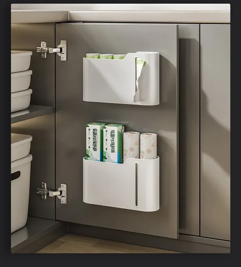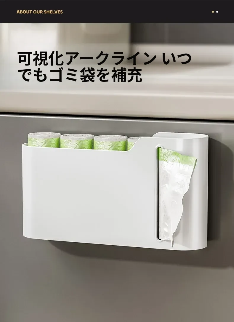 キッチンゴミ袋収納ラック 壁掛け式・穴あけ不要 大容量プラスチック袋ディスペンサー ゴミ袋収納の必需品! 整理整頓を簡単に!