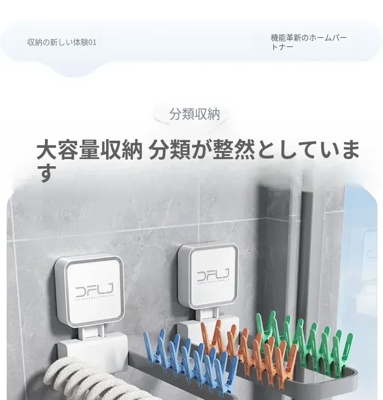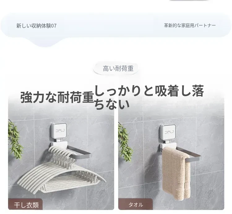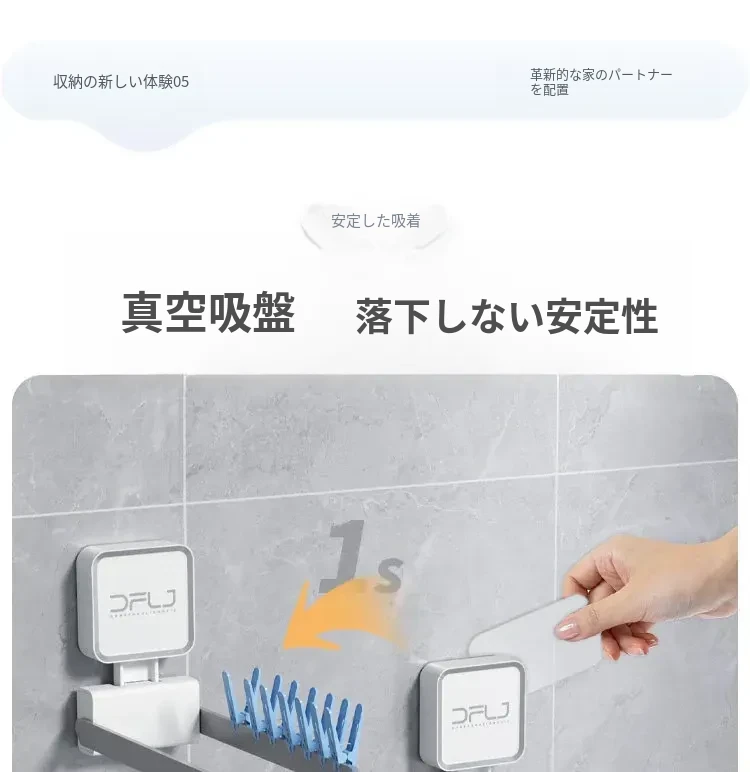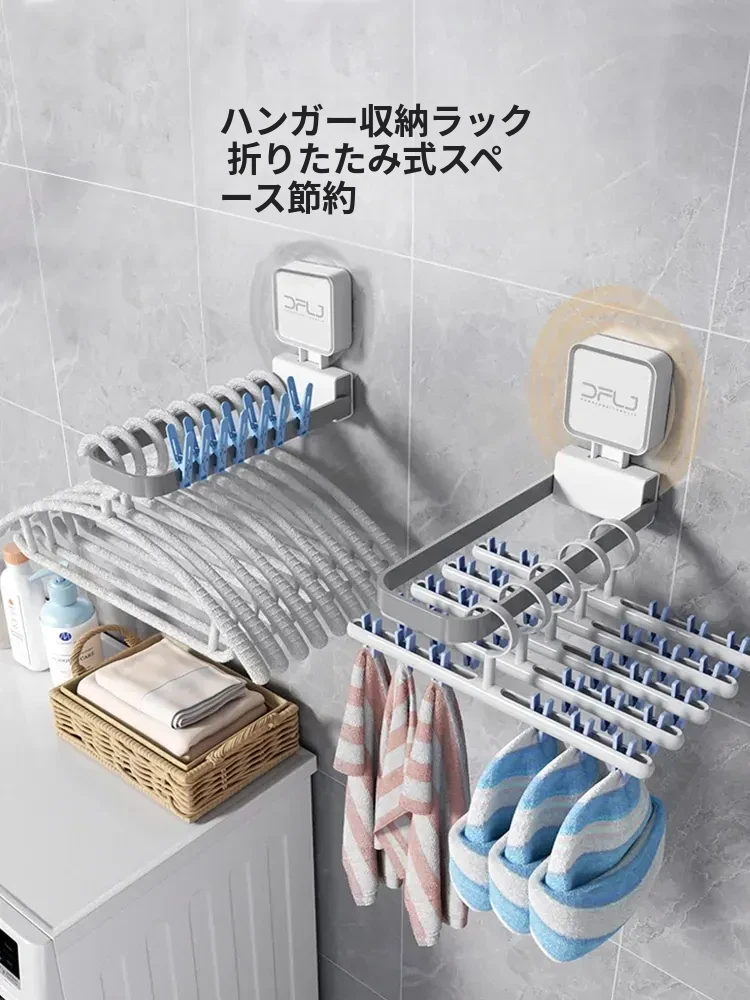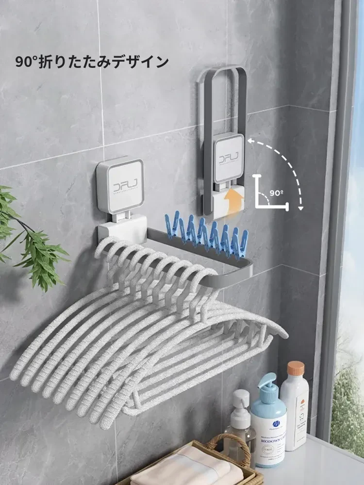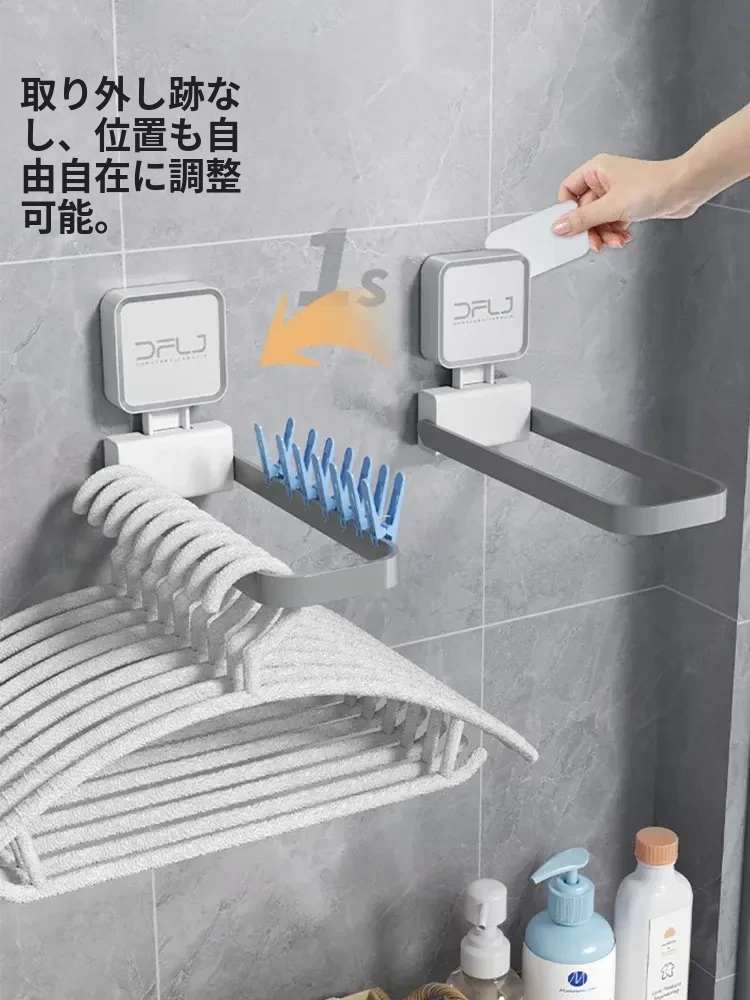 壁掛け式吸盤付き折りたたみ衣類ハンガー - バルコニーでの衣類整理に最適な収納ラック!使いやすさ抜群、スペースを有効活用できる便利アイテムです。あなたの生活をもっと快適に!