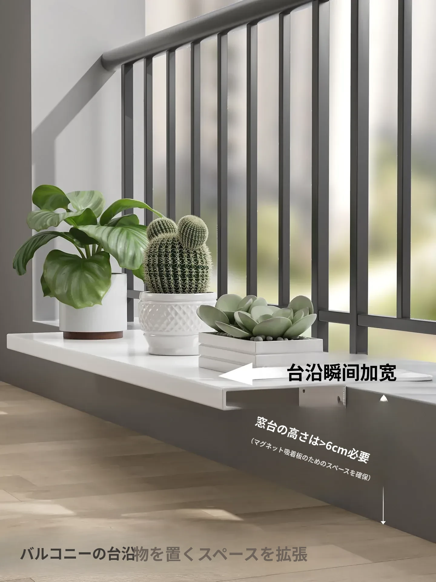 窓辺拡張ボード バルコニー用幅広花壇台 超スリム延長収納ラック!窓辺を有効活用し、おしゃれに収納力アップ!狭いスペースでも大活躍の便利アイテム!