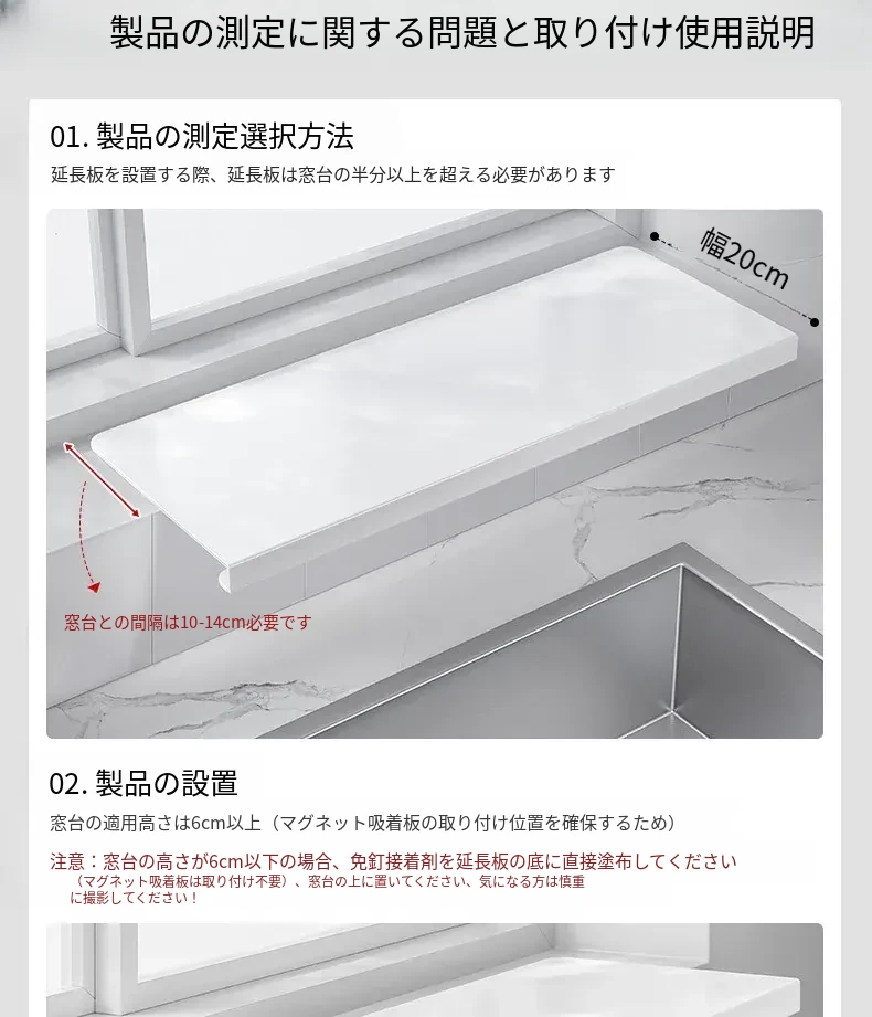 窓台延長板20*50cm【ホワイト】
